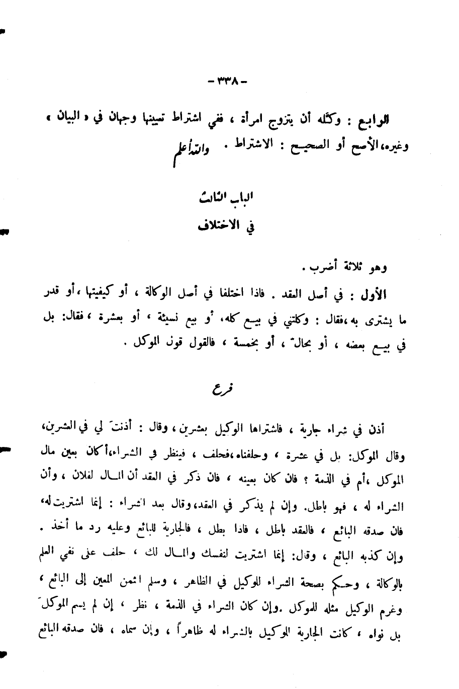 الْبَابُ الثَّالِثُ فِي الِاخْتِلَافِ