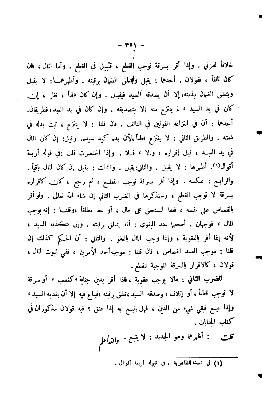خِلَافًا لِلْمُزَنِيِّ. وَإِذَا أَقَرَّ بِسَرِقَةٍ تُوجِبُ الْقَطْعَ، قُبِلَ فِي الْقَطْعِ. وَأَمَّا الْمَالُ، فَإِنْ كَانَ تَالِفًا، فَقَوْلَانِ: