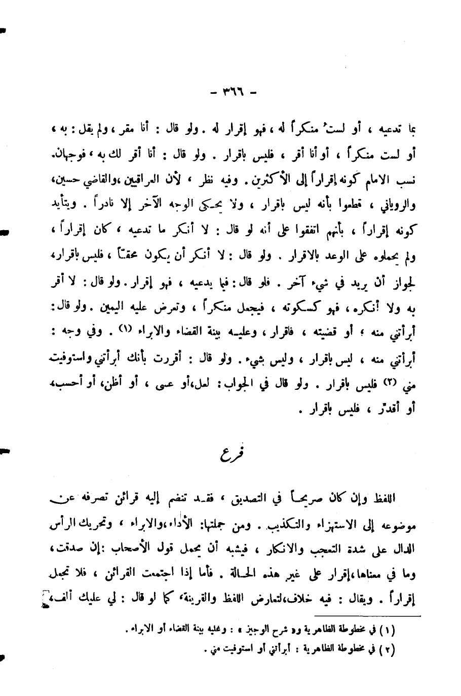 نَسَبَ الْإِمَامُ كَوْنَهُ إِقْرَارًا إِلَى الْأَكْثَرِينَ. وَفِيهِ نَظَرٌ؛ لِأَنَّ الْعِرَاقِيِّينَ، وَالْقَاضِيَ حُسَيْنًا وَالرُّويَانِيَّ قَطَعُوا بِأَنَّهُ لَيْسَ بِإِقْرَارٍ، وَلَا يُحْكَى الْوَجْهُ الْآخَرُ إِلَّا نَادِرًا. وَيَتَأَيَّدُ كَوْنُهُ إِقْرَارًا بِأَنَّهُمُ اتَّفَقُوا عَلَى أَنَّهُ لَوْ قَالَ: لَا أُنْكِرُ مَا تَدَّعِيهِ، كَانَ إِقْرَارًا، وَلَمْ يَحْمِلُوهُ عَلَى الْوَعْدِ بِالْإِقْرَارِ. وَلَوْ قَالَ: لَا أُنْكِرُ أَنْ يَكُونَ مُحِقًّا، فَلَيْسَ بِإِقْرَارٍ، لِجَوَازِ أَنْ يُرِيدَ فِي شَيْءٍ آخَرَ. فَلَوْ قَالَ: فِيمَا يَدَّعِيهِ، فَهُوَ إِقْرَارٌ. وَلَوْ قَالَ: لَا أُقِرُّ بِهِ وَلَا أُنْكِرُهُ، فَهُوَ كَسُكُوتِهِ، فَيُجْعَلُ مُنْكِرًا، وَتُعْرَضُ عَلَيهِ الْيَمِينُ. وَلَوْ قَالَ: أَبْرَأْتَنِي مِنْهُ، أَوْ قَضَيْتُهُ، فَإِقْرَارٌ، وَعَلَيهِ بَيِّنَةُ الْقَضَاءِ وَالْإِبْرَاءِ. وَفِي وَجْهٍ: أَبْرَأْتَنِي مِنْهُ، لَيْسَ بِإِقْرَارٍ، وَلَيْسَ بِشَيْءٍ. وَلَوْ قَالَ: أَقْرَرْتُ بِأَنَّكَ أَبْرَأْتَنِي وَاسْتَوْفَيْتَ مِنِّي فَلَيْسَ بِإِقْرَارٍ.