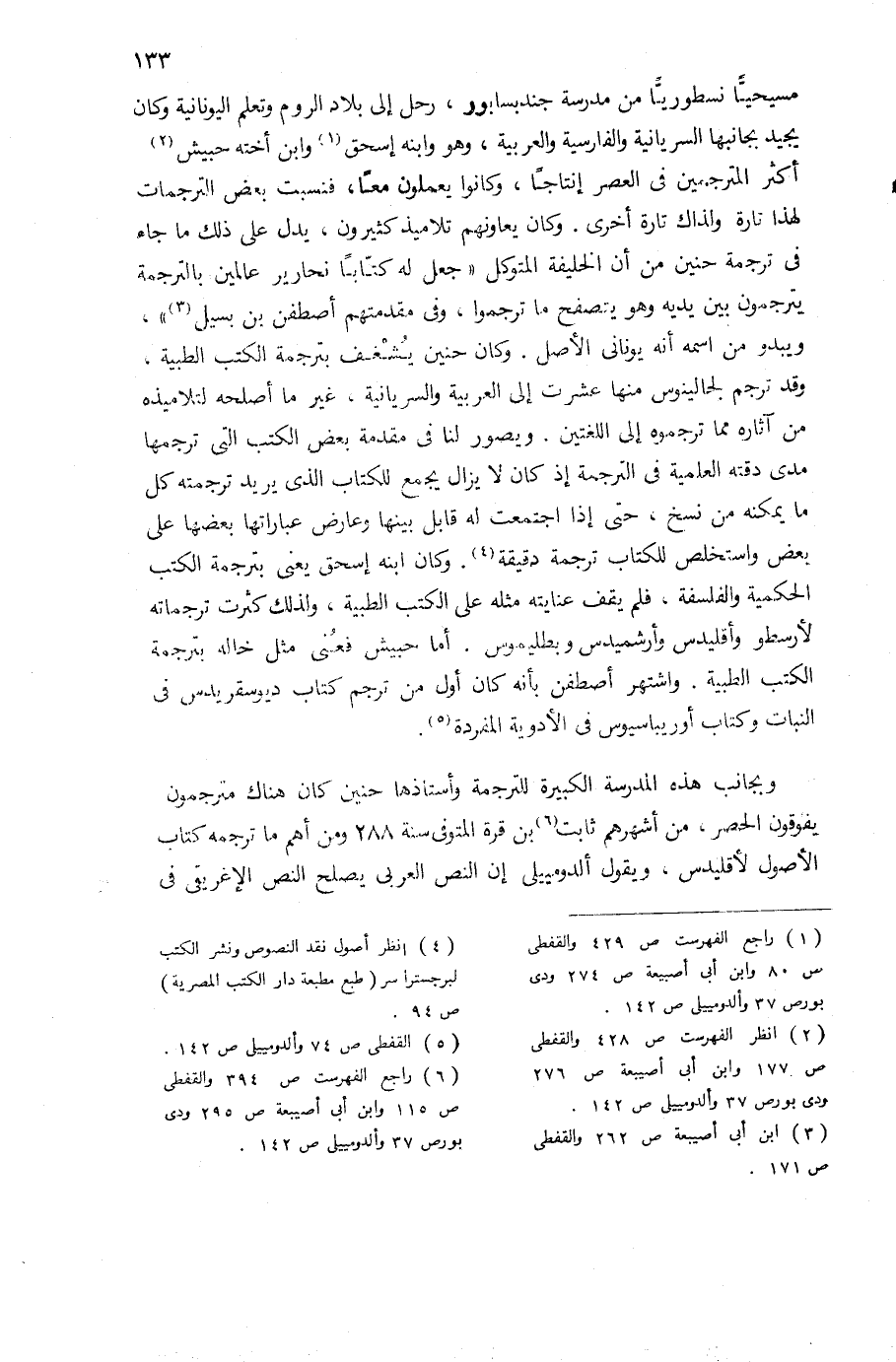 (¬2) انظر الفهرست ص 428 والقفطى ص 177 وابن أبى أصيبعة ص 276 ودى بور ص 37 وألدومييل ص 142.