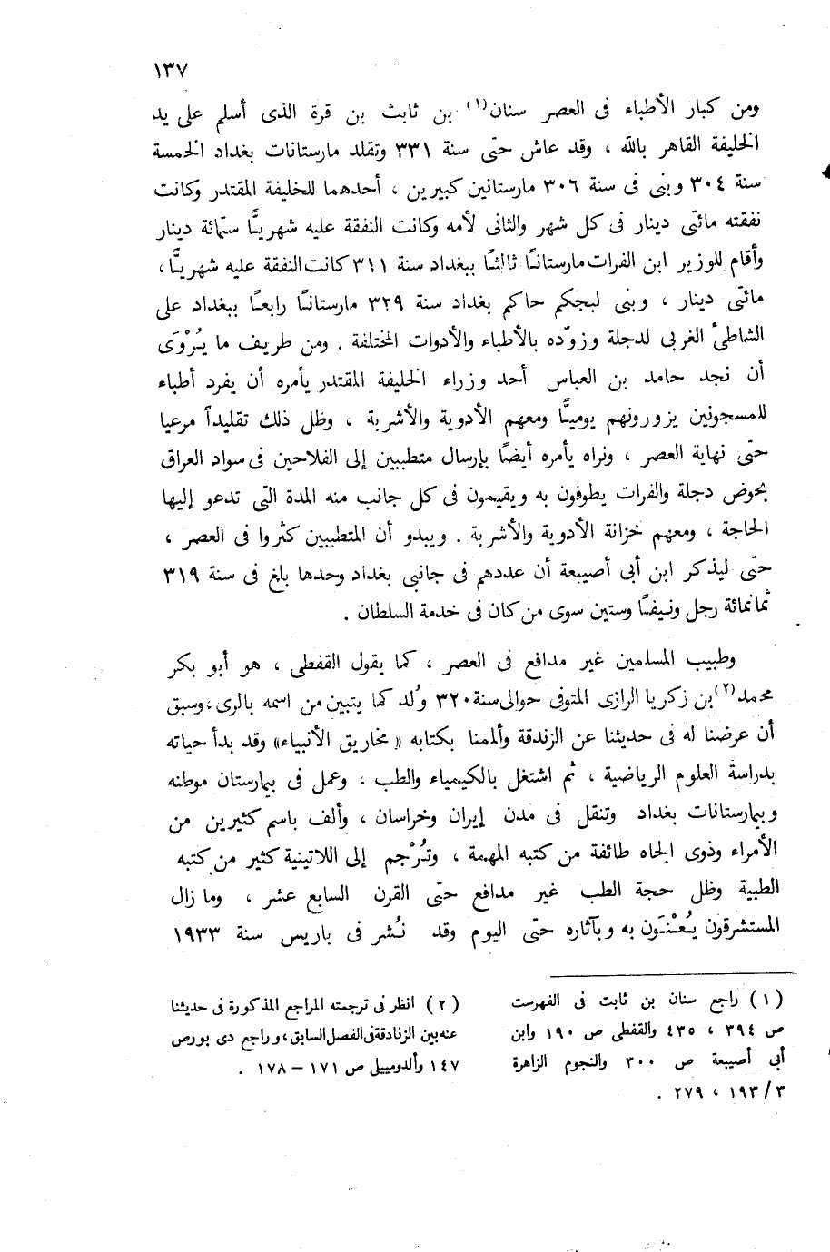 (¬1) راجع سنان بن ثابت فى الفهرست ص 394، 435 والقفطى ص 190 وابن أبى أصيبعة ص 300 والنجوم الزاهرة 3/ 193، 279.