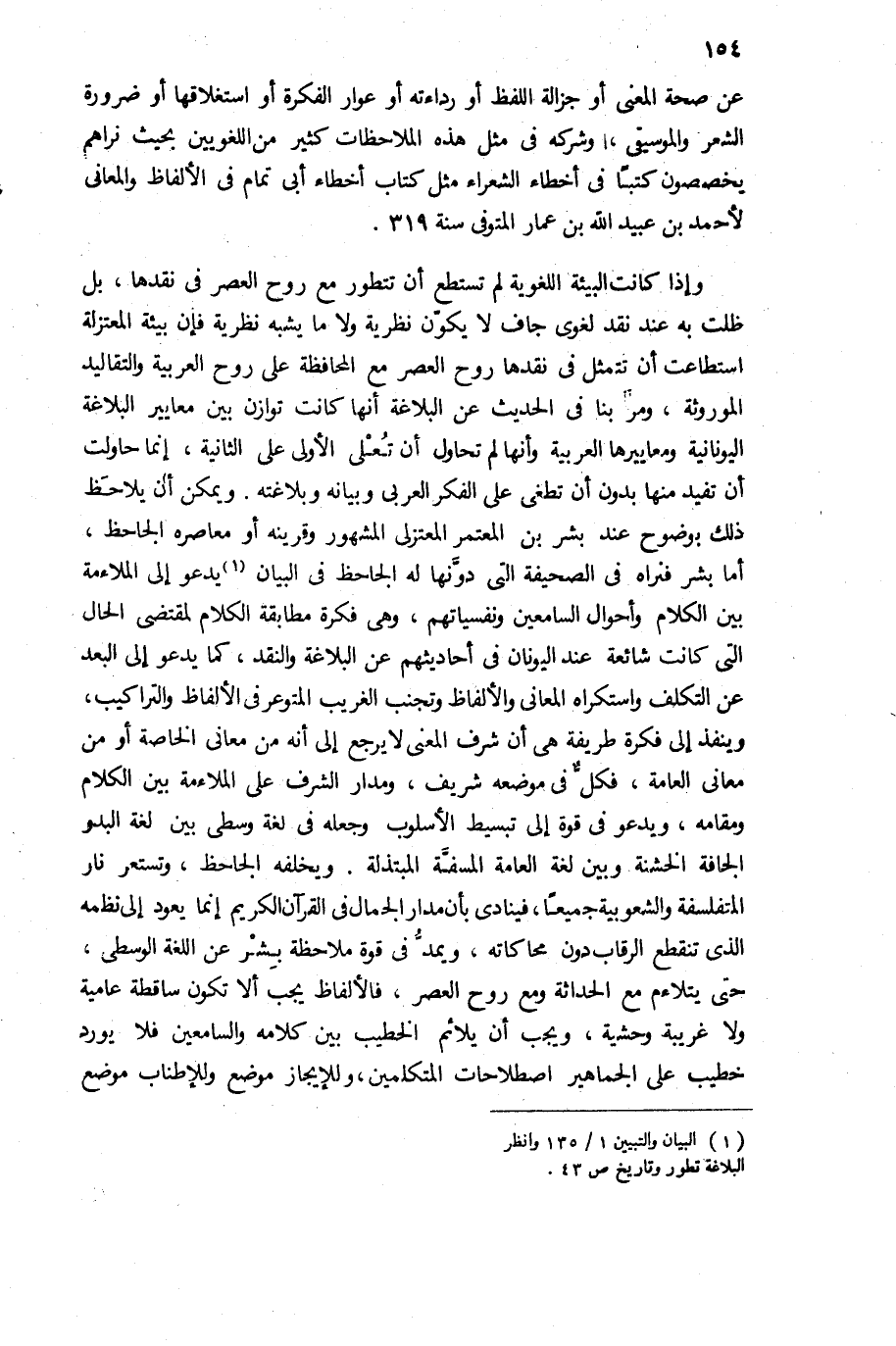 (¬1) البيان والتبيين 1/ 135 وانظر البلاغة تطور وتاريخ ص 43.