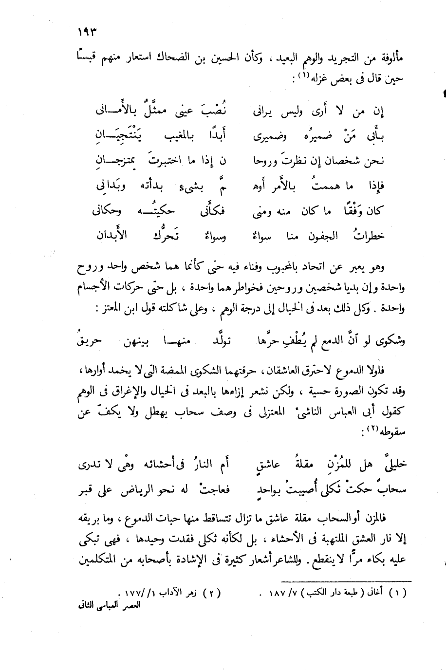 مألوفة من التجريد والوهم البعيد، وكأن الحسين بن الضحاك استعار منهم قبسا حين قال فى بعض غزله (¬1):