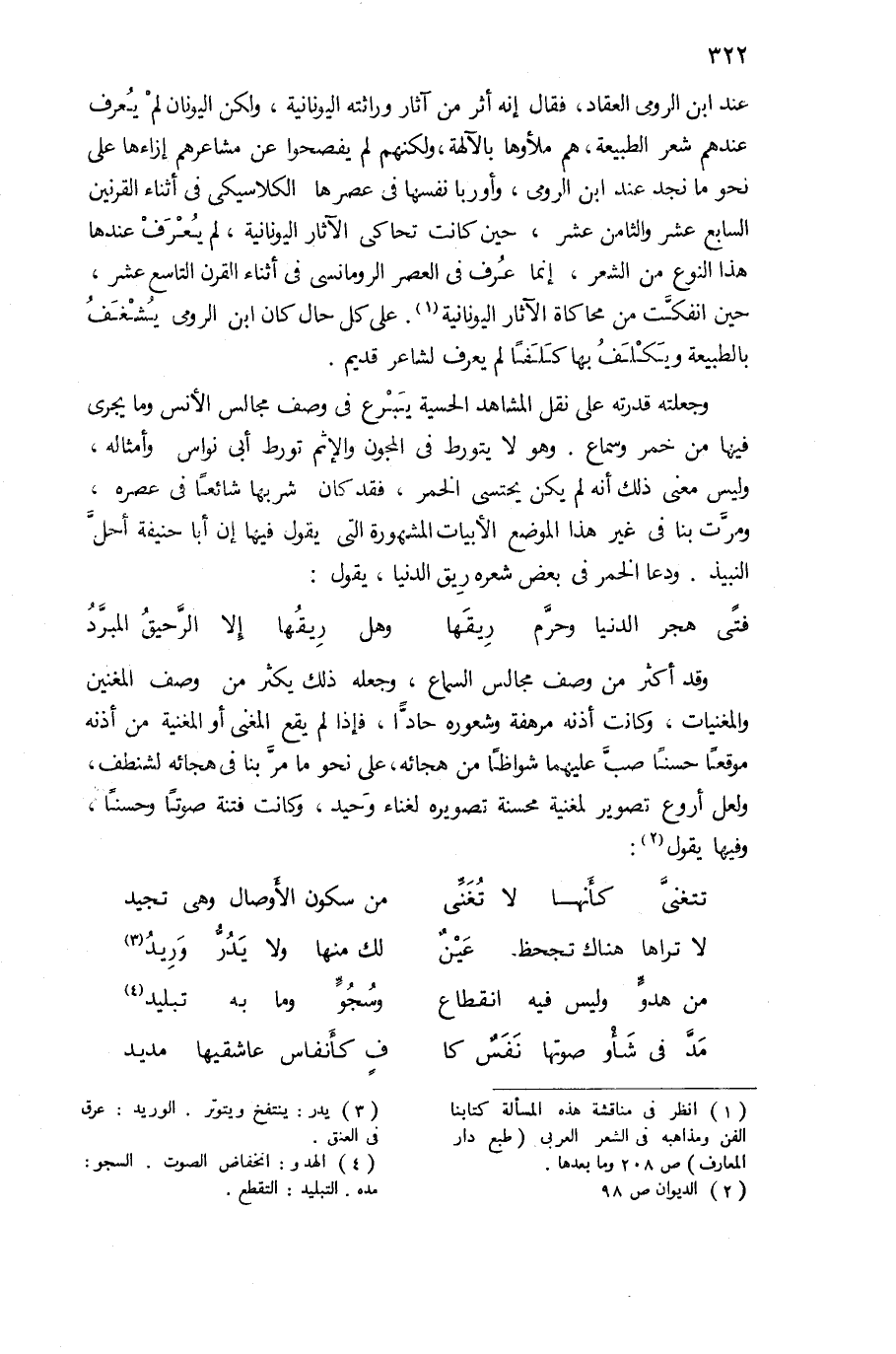 (¬1) انظر فى مناقشة هذه المسألة كتابنا الفن ومذاهبه فى الشعر العربى (طبع دار المعارف) ص 208 وما بعدها.