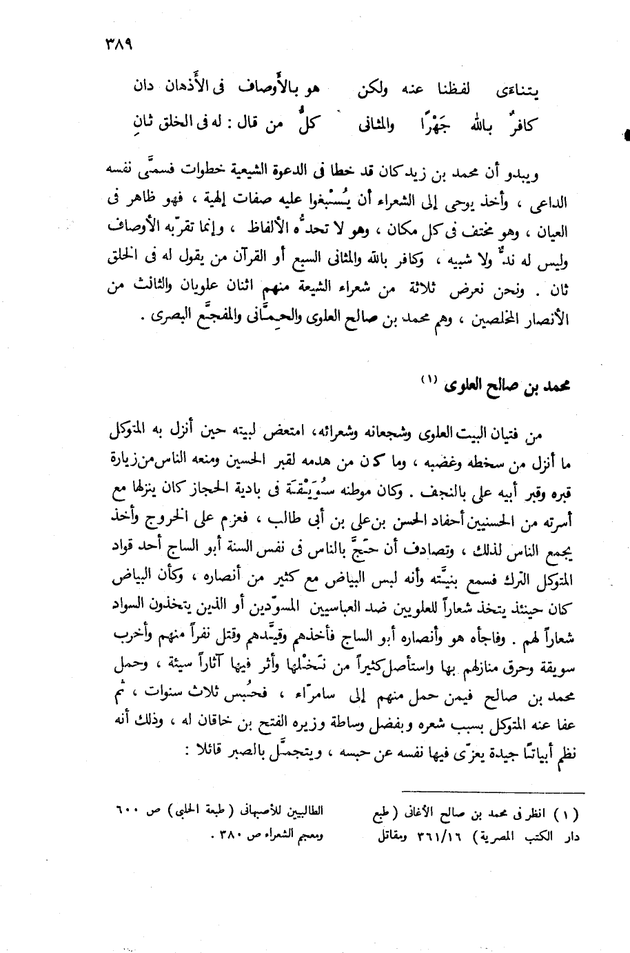 (¬1) انظر فى محمد بن صالح الأغانى (طبع دار الكتب المصرية) 16/ 361 ومقاتل الطالبيين للأصبهانى (طبعة الحلبى) ص 600 ومعجم الشعراء ص 380.