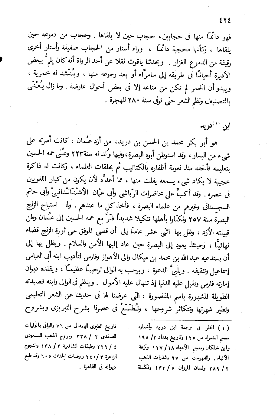 (¬1) انظر فى ترجمة ابن دريد وأشعاره معجم الشعراء ص 425 وتاريخ بغداد 2/ 195 وابن خلكان ومعجم الأدباء 18/ 127 ونزهة الألباء. والفهرست ص 97 وشذرات الذهب 2/ 289 ولسان الميزان 5/ 132 وتكملة تاريخ الطبرى للهمدانى ص 76 والوافى بالوفيات للصفدى 2/ 338 ومروج الذهب للمسعودى 4/ 229 وطبقات الشافعية 3/ 138 والنجوم الزاهرة 3/ 240 روضات الجنات 605 وقد طبع ديوانه فى القاهرة.