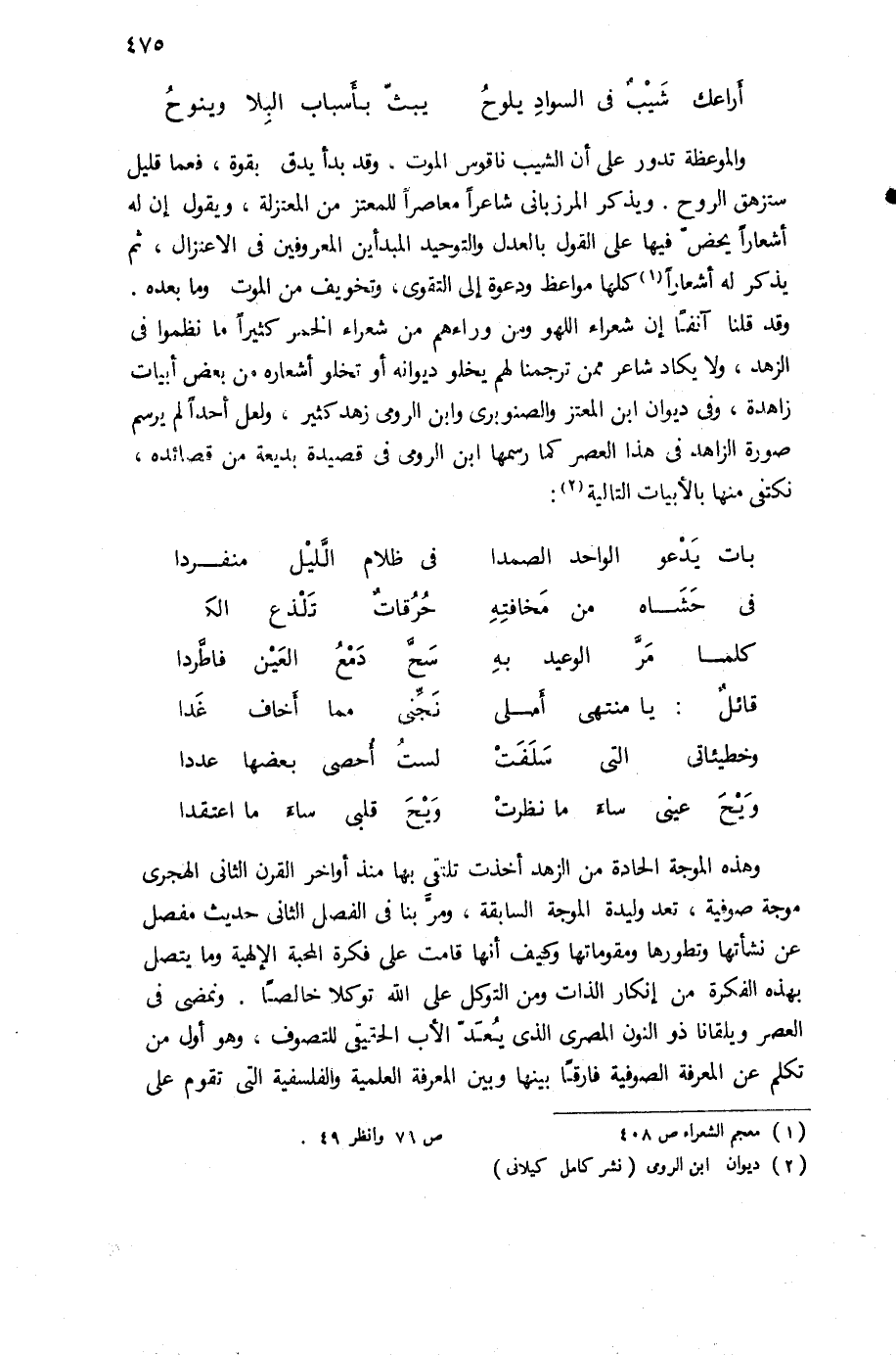 (¬2) ديوان ابن الرومى (نشر كامل كيلانى) ص 79 وانظر 49.