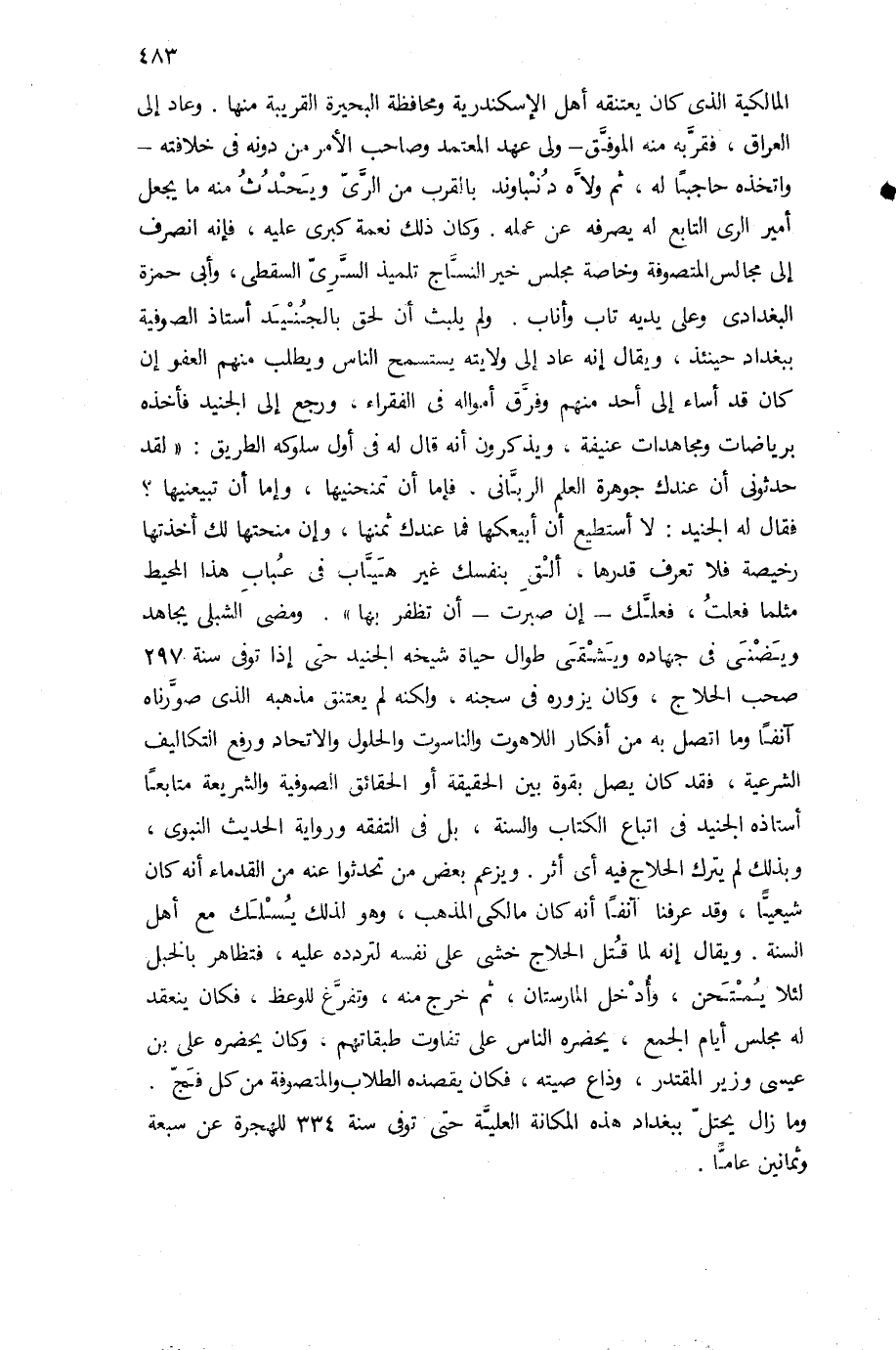 وما زال يحتلّ ببغداد هذه المكانة العليّة حتى توفى سنة 334 للهجرة عن سبعة وثمانين عامّا.
