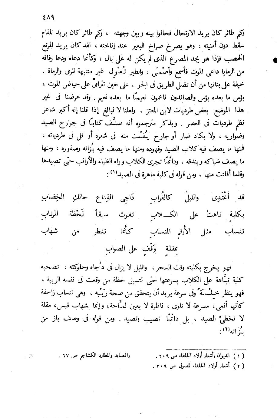 (¬2) أشعار أولاد الخلفاء للصولى ص 209. والمصايد والمطارد الكشاجم ص 67.