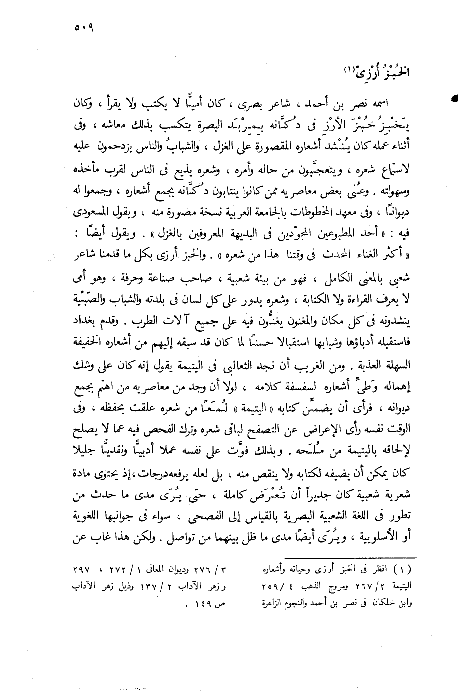 (¬1) انظر فى الخبز أرزى وحياته وأشعاره اليتيمة 2/ 267 ومروج الذهب 4/ 259 وابن خلكان فى نصر بن أحمد والنجوم الزاهرة 3/ 276 وديوان المعانى 1/ 272، 297 وزهر الآداب 2/ 137 وذيل زهر الآداب ص 149.