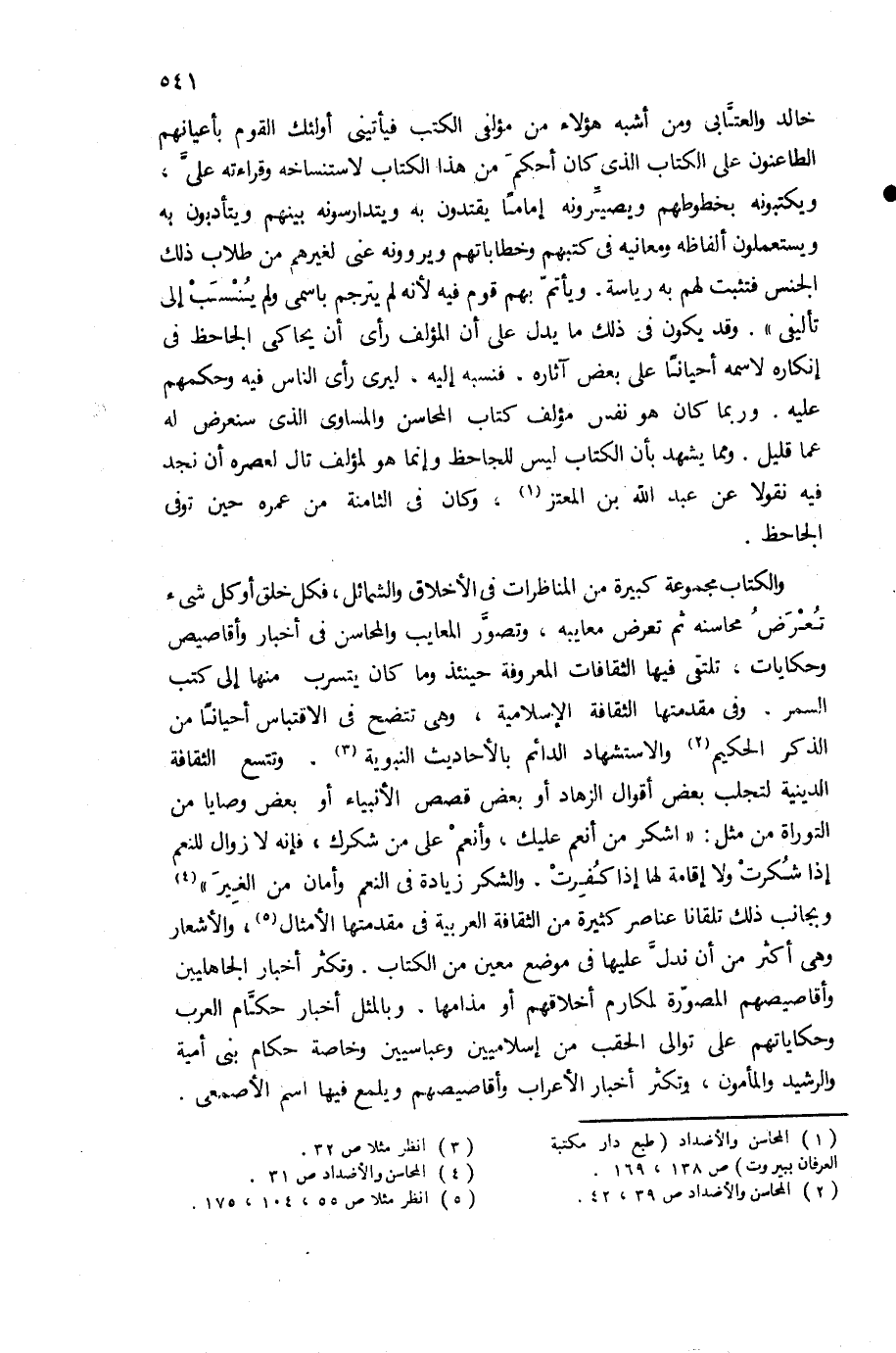 (¬1) المحاسن والأضداد (طبع دار مكتبة العرفان ببيروت) ص 138، 169.