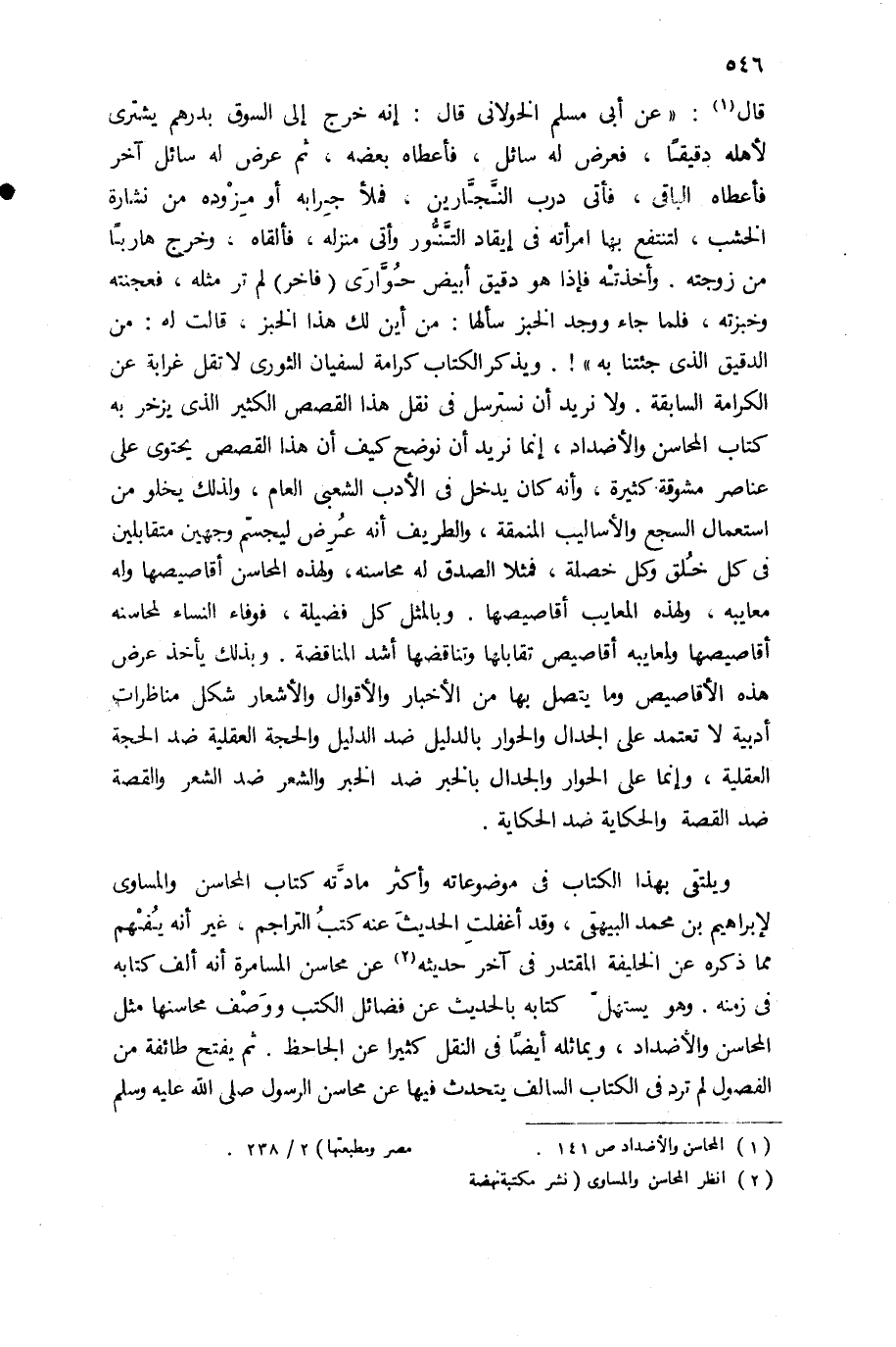 (¬2) انظر المحاسن والمساوى (نشر مكتبة نهضة مصر ومطبعتها) 2/ 238.