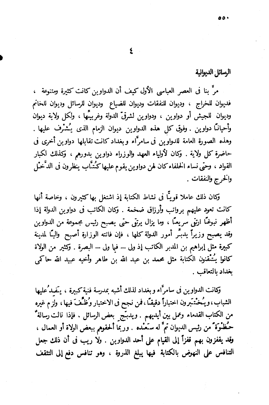 مرّ بنا فى العصر العباسى الأول كيف أن الدواوين كانت كثيرة ومتنوعة، فديوان للخراج، وديوان للنفقات وديوان للضياع وديوان للرسائل وديوان للخاتم وديوان للجيش أو دواوين، ودواوين لشرقىّ الدولة وغربيّها، ولكل ولاية ديوان وأحيانا دواوين. وفوق كل هذه الدواوين ديوان الزمام الذى يشرف عليها.