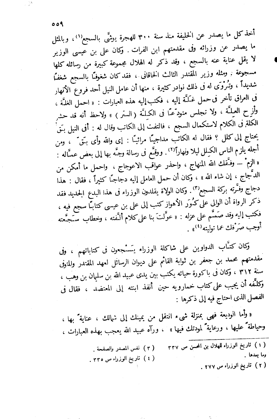 (¬1) تاريخ الوزراء للهلال بن المحسن ص 337 وما بعدها.