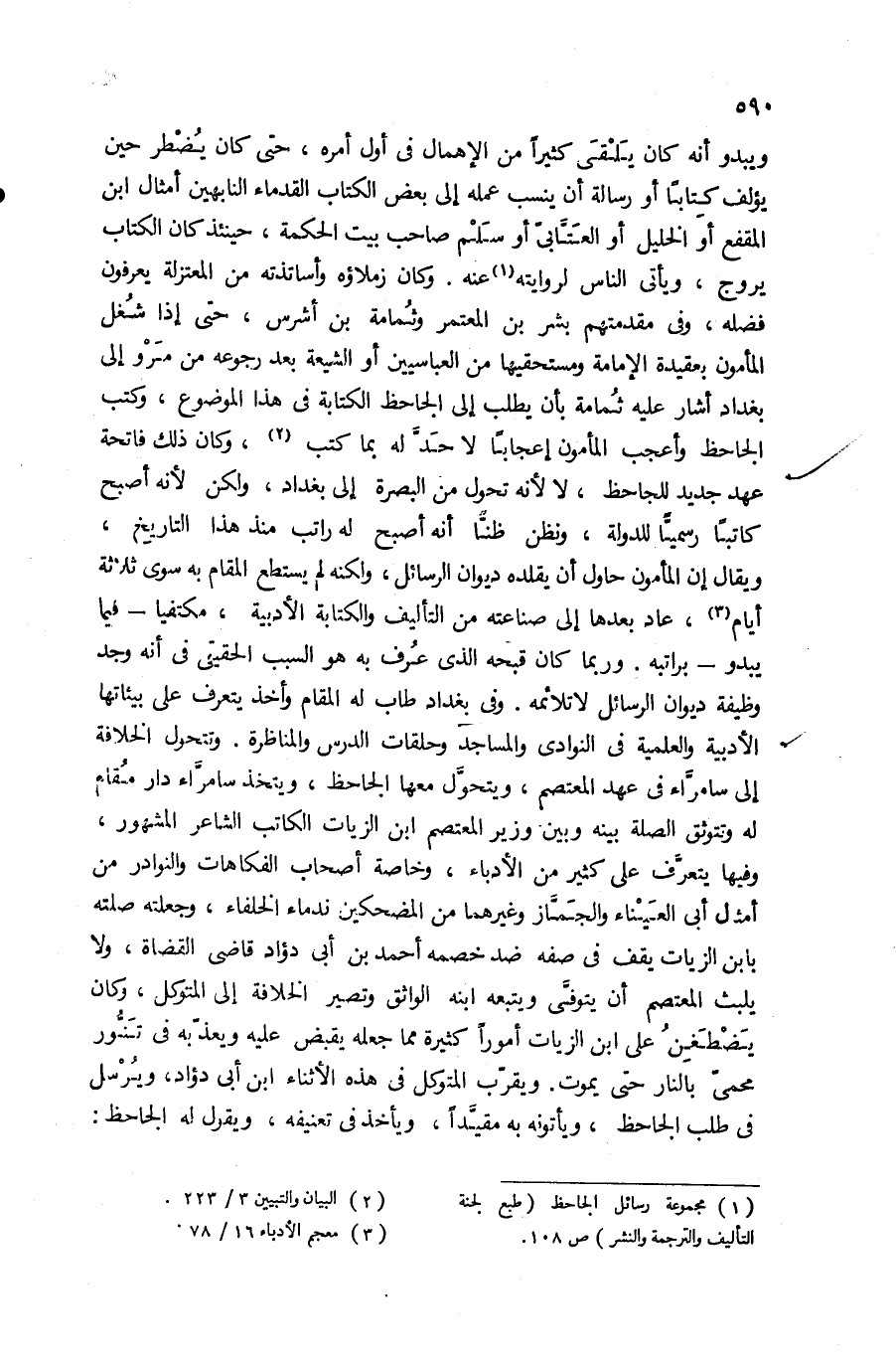 (¬1) مجموعة رسائل الجاحظ (طبع لجنة التأليف والترجمة والنشر) ص 108.