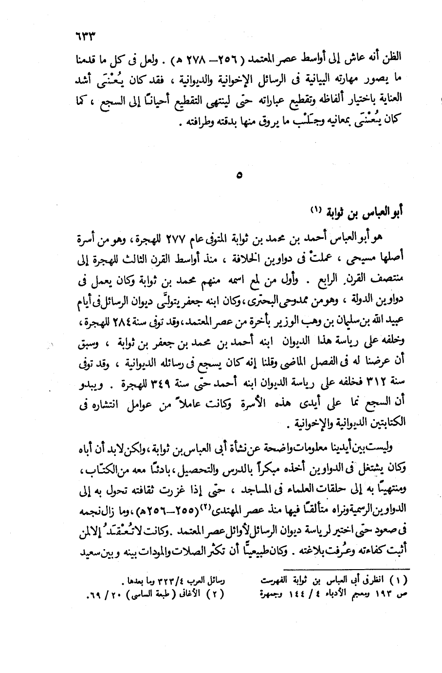 (¬1) انظر فى أبى العباس بن ثوابة الفهرست ص 193 ومعجم الأدباء 4/ 144 وجمهرة رسائل العرب 4/ 323 وما بعدها.