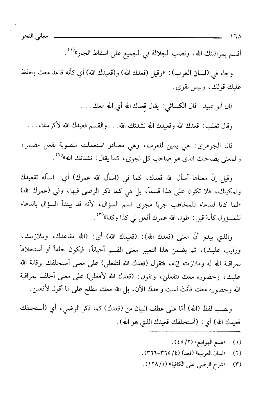 ونصب لفظ الله أما على عطف البيان من قعدك، كما ذكر الرضي، أي أستحلفك قعيدك الله، أي: أستحلفك قعيدك الذي هو الله.