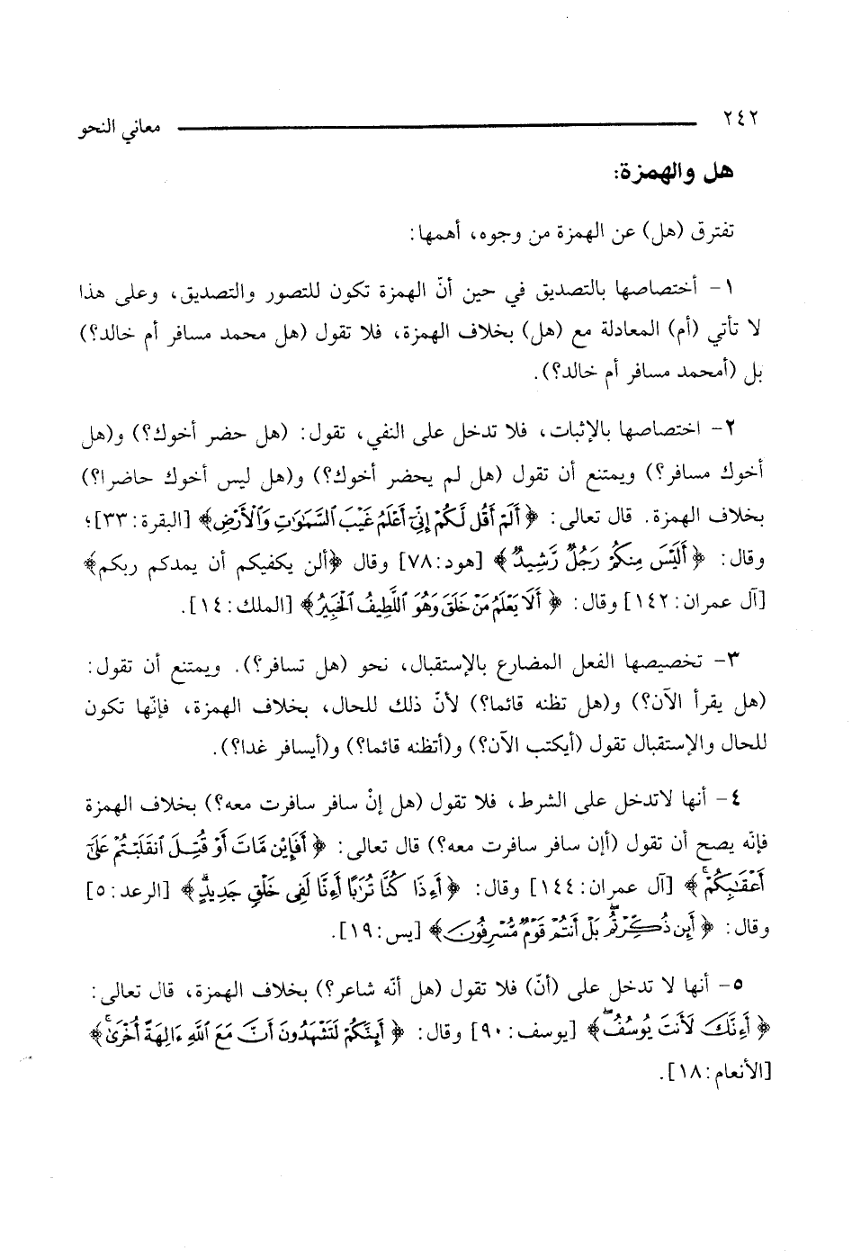 5 - أنها لا تدخل على (أن) فلا تقول (هل أنه شاعر؟ ) بخلاف الهمزة، قال تعالى: {أءنك لأنت يوسف} [يوسف: 90]، وقال: {أئنكم لتشهدون أن مع الله آلهة أخرى} [الأنعام: 18].