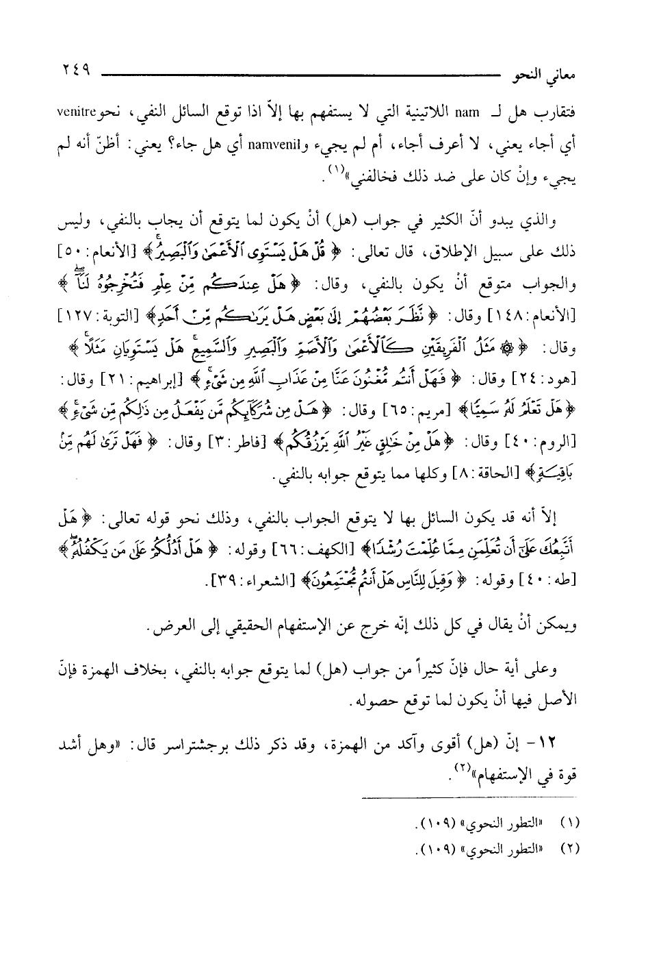 12 - إن (هل) أقوى وآكد من الهمزة، وقد ذكر ذلك برجشتراسر قال: " وهل أشد قوة في الاستفهام" (¬2).