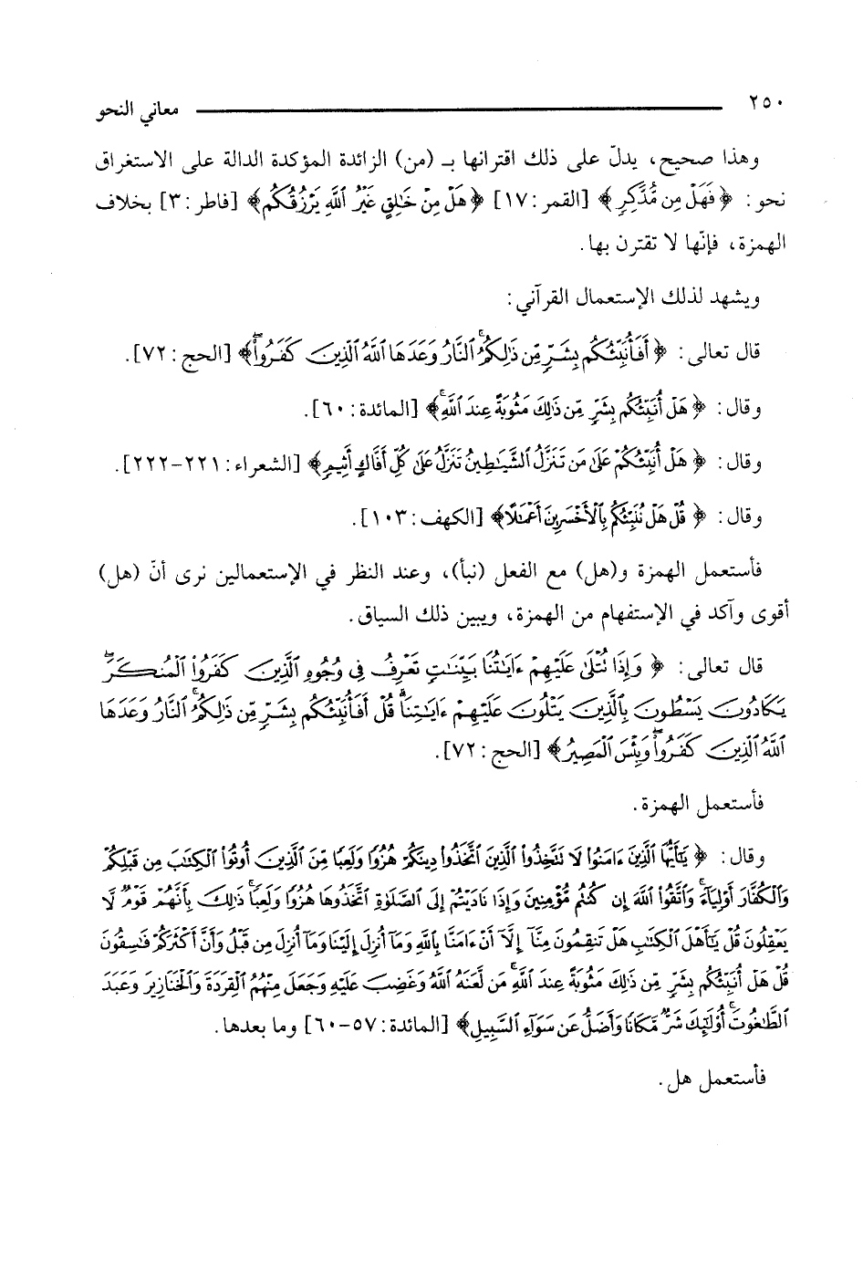 وهذا صحيح، يدل على ذلك اقترانها بـ (من) الزائدة المؤكدة الدالة على الاستغراق نحو: {فهل من مدكر} [القمر: 17]، {هل من خالق غير الله يرزقكم} [فاطر: 3]، بخلاف الهمزة، فإنها لا تقترن بها.
