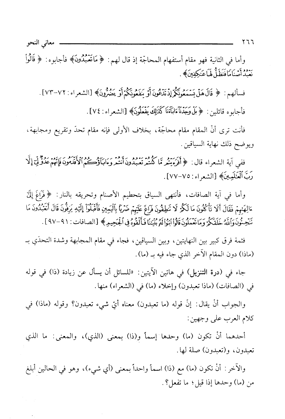 والجواب ان يقال: إن قوله (ما تعبدون) معناه أي شيء تعبدون؟ وقوله (ماذا) في كلام العرب على وجهين: