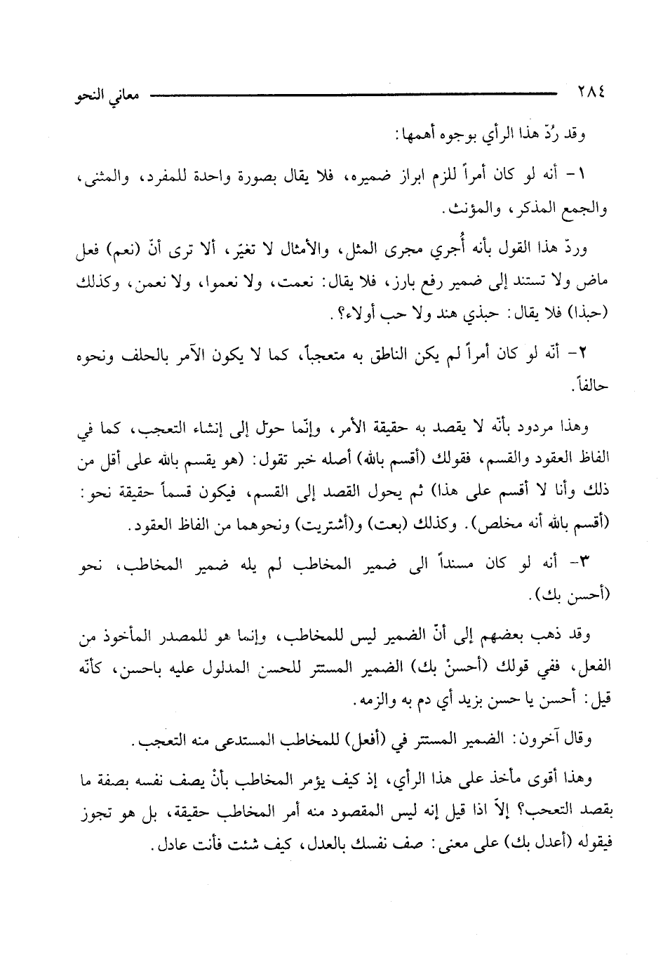 وهذا مردود بأنه لا يقصد به حقيقة الأمر، وإنما حول إلى إنشاء التعجب، كما في ألفاظ العقود والقسم، فقولك (أقسم بالله) أصله خبر تقول: (هو يقسم بالله على أقل من ذلك وأنا لا أقسم على هذا) ثم يحول القصد إلى القسم، فيكون قسمًا حقيقة نحو: (أقسم بالله أنه مخلص)، وكذلك (بعت) و (أشتريت) ونحوهما من ألفاظ العقود.