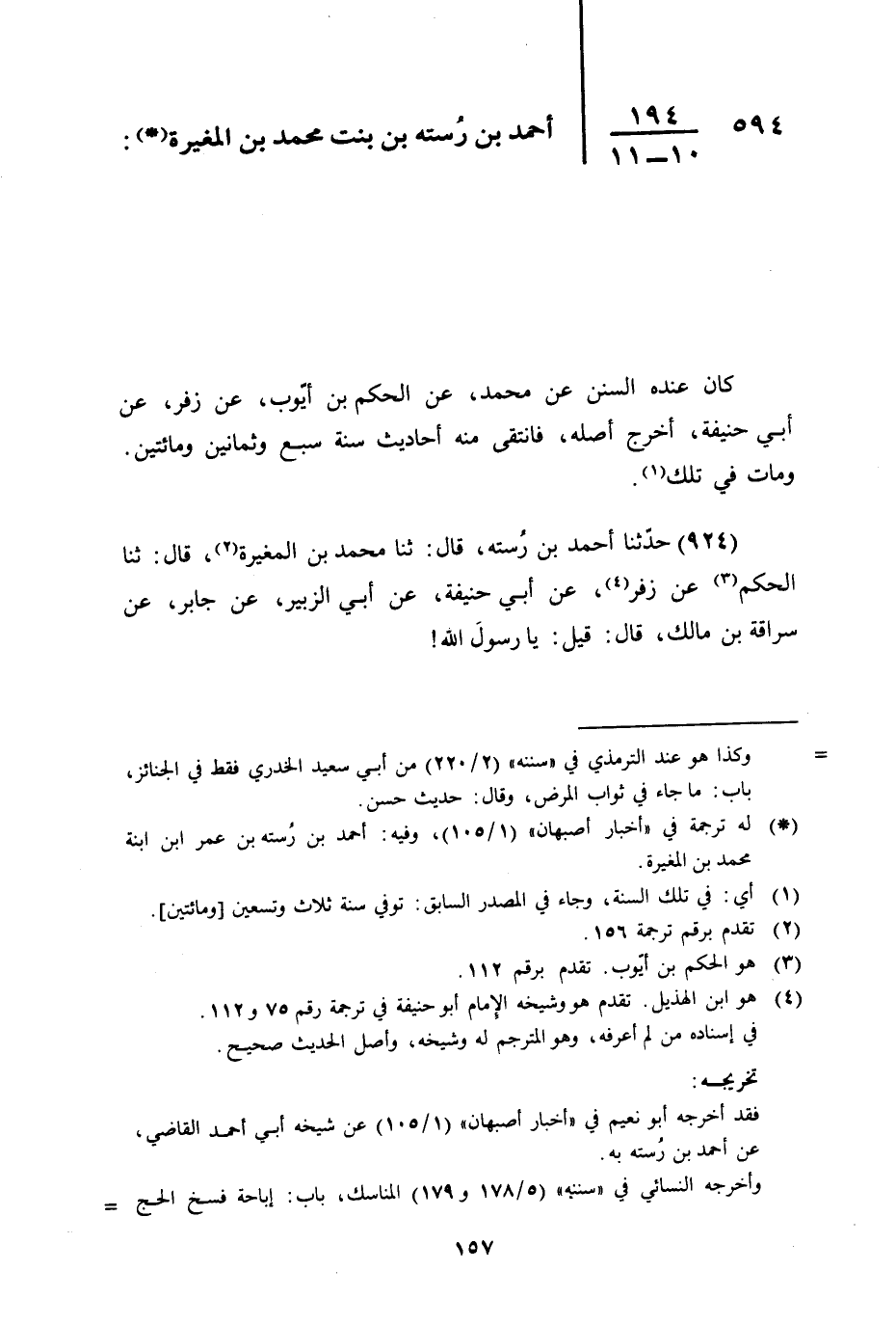 594 - أَحْمَدُ بْنُ رُسْتَةَ بْنِ بِنْتِ مُحَمَّدِ بْنِ الْمُغِيرَةِ