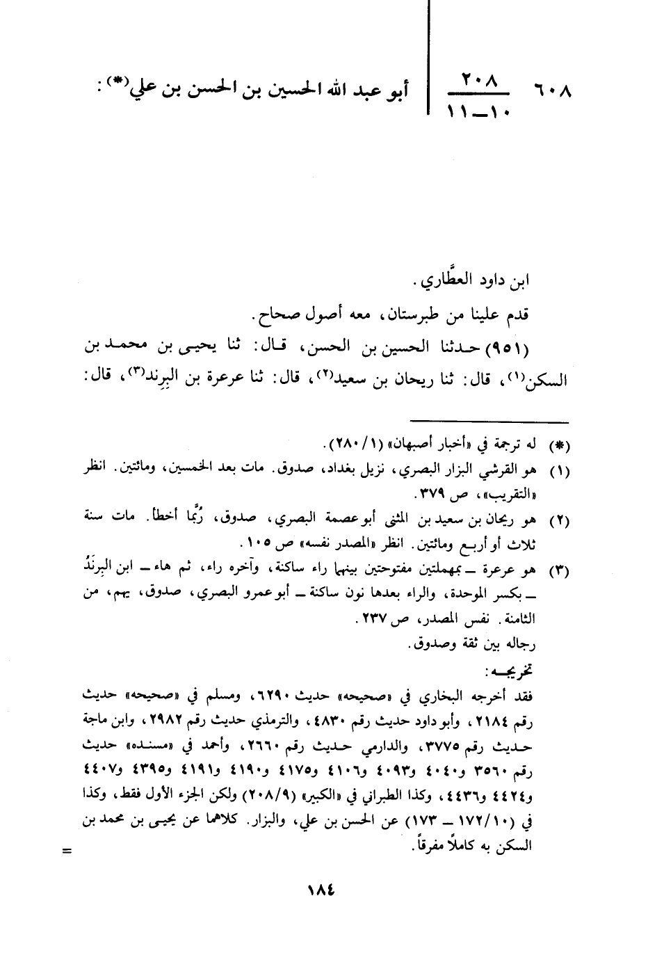 608 - أَبُو عَبْدِ اللَّهِ الْحُسَيْنُ بْنُ الْحَسَنِ بْنِ عَلِيِّ بْنِ دَاوُدَ الْعَطَّارِيُّ
