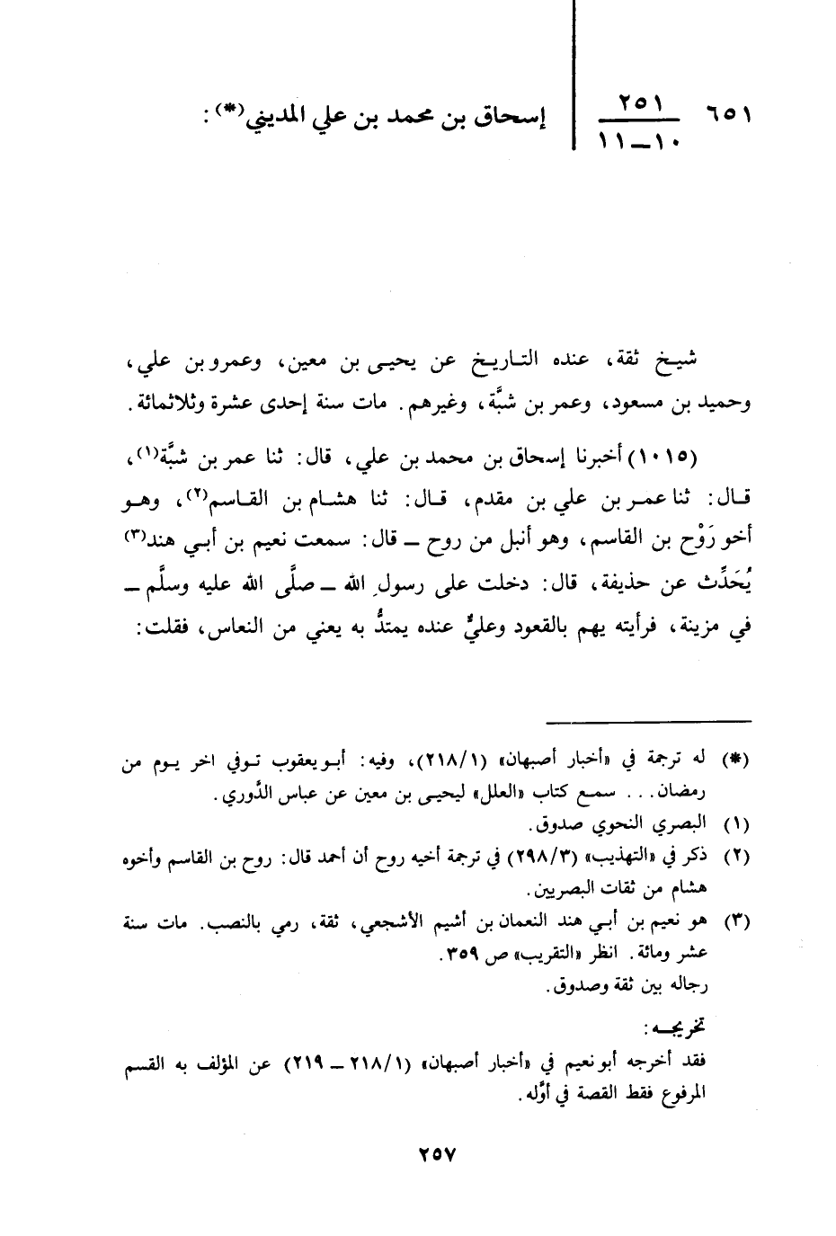 651 - إِسْحَاقُ بْنُ مُحَمَّدِ بْنِ عَلِيٍّ الْمَدِينِيُّ