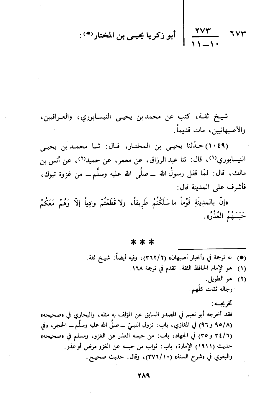 673 - أَبُو زَكَرِيَّا يَحْيَى بْنُ الْمُخْتَارِ