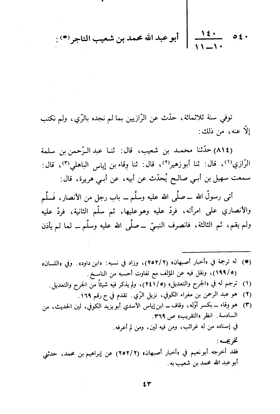 540 - أَبُو عَبْدِ اللَّهِ مُحَمَّدُ بْنُ شُعَيْبٍ التَّاجِرُ
