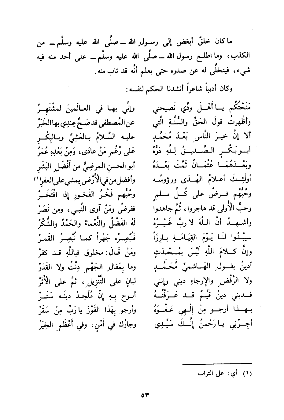 وَأَظْهَرْتُ قَوْلَ الْحَقِّ وَالسُّنَّةِ الَّتِي ... عَنِ الْمُصْطَفَى قَدْ صَحَّ عِنْدِي بِهَا الْخَبَرُ