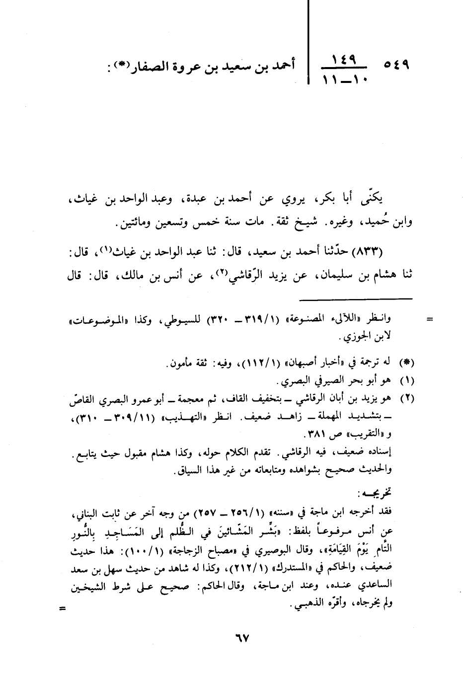 549 - أَحْمَدُ بْنُ سَعِيدِ بْنِ عُرْوَةَ الصَّفَّارُ