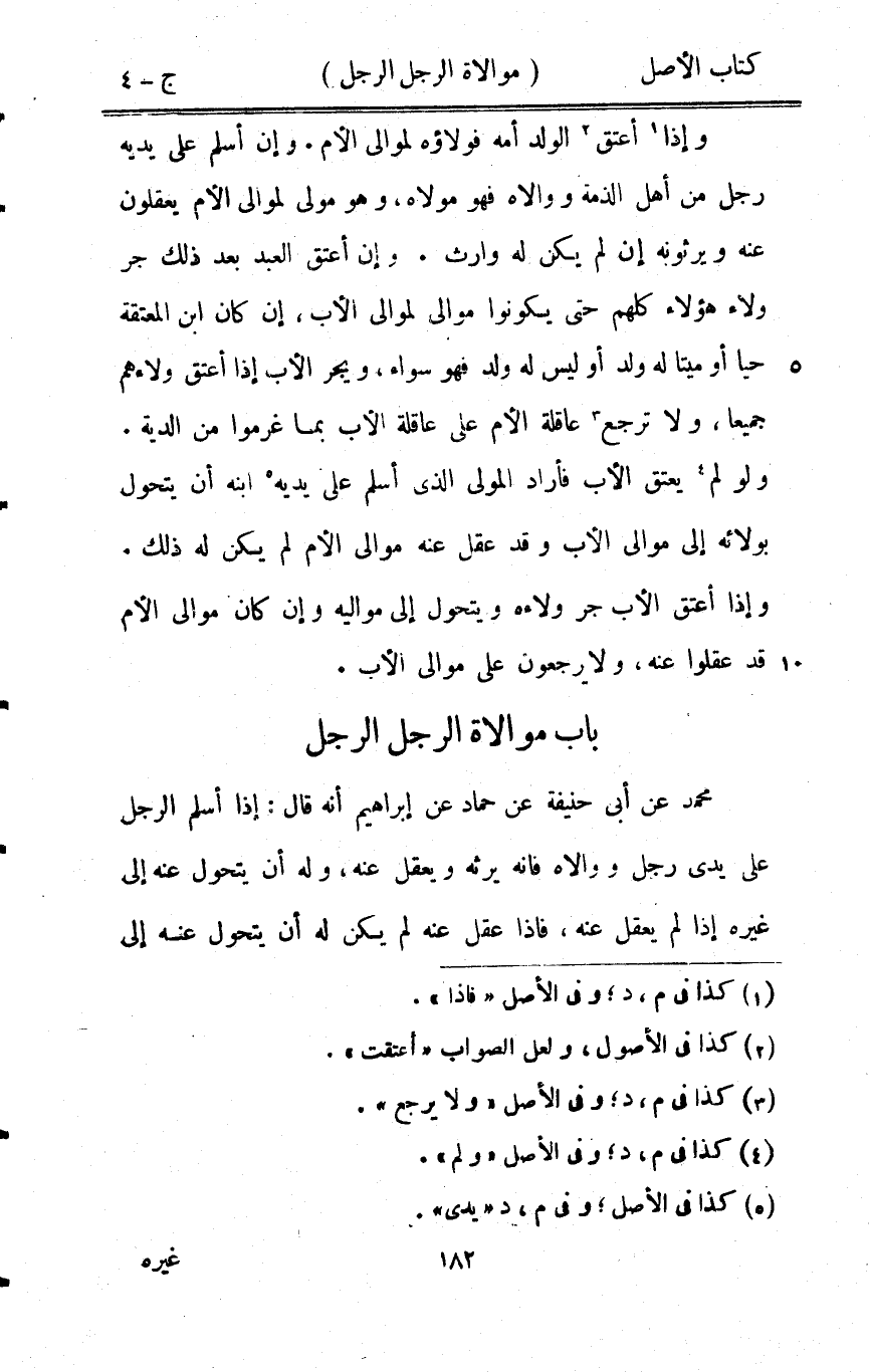 - مُحَمَّد عَن أبي حنيفَة عَن حَمَّاد عَن إِبْرَاهِيم أَنه قَالَ إِذا أسلم الرجل على يَدي رجل ووالاه فانه يَرِثهُ وَيعْقل عَنهُ وَله أَن يتَحَوَّل عَنهُ إِلَى غَيره إِذا لم يعقل عَنهُ فاذا عقل عَنهُ لم يكن لَهُ أَن يتَحَوَّل عَنهُ إِلَى