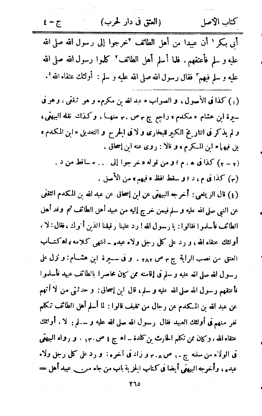ابي بكر أَن عبيدا من أهل الطَّائِف خَرجُوا إِلَى رَسُول الله صلى الله عَلَيْهِ وَسلم فَأعْتقهُمْ فَلَمَّا أسلم أهل الطَّائِف كلموا رَسُول الله صلى الله عَلَيْهِ وَسلم فيهم فَقَالَ رَسُول الله صلى الله عَلَيْهِ وَسلم أُولَئِكَ عُتَقَاء الله