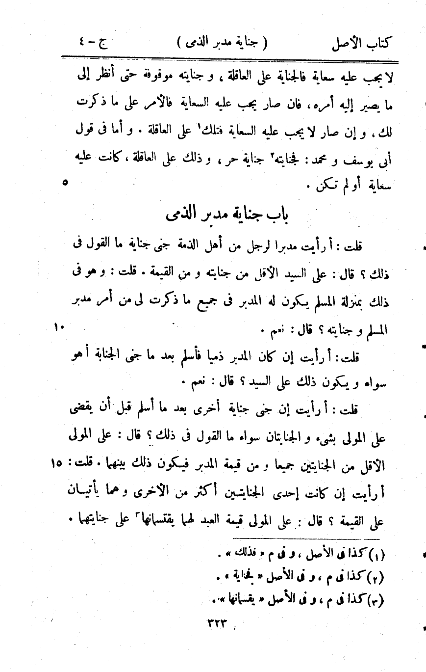 - بَاب جِنَايَة مُدبر الذِّمِّيّ