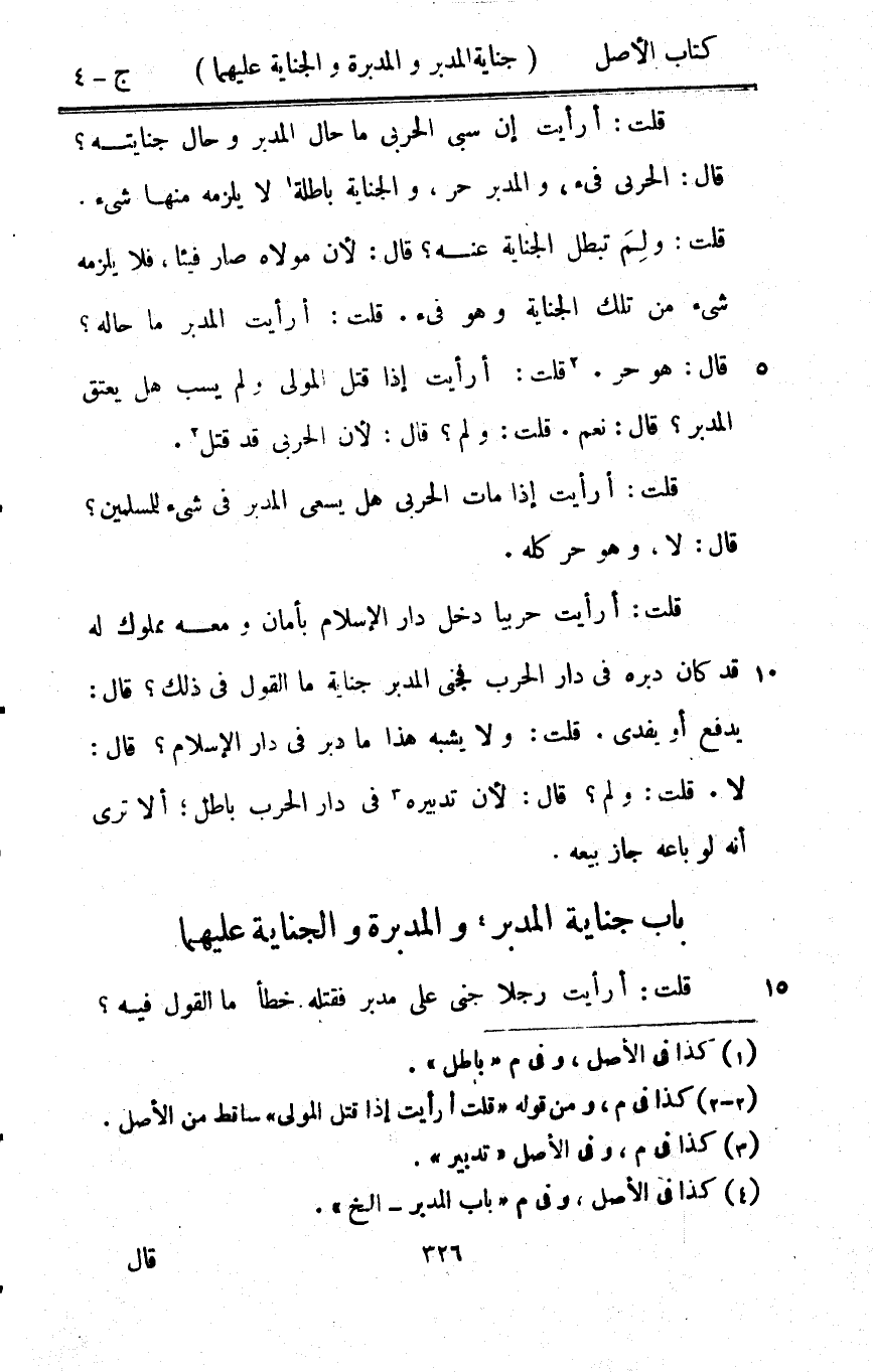 - قلت أَرَأَيْت رجلا جنى على مُدبر فَقتله خطأ مَا القَوْل فِيهِ