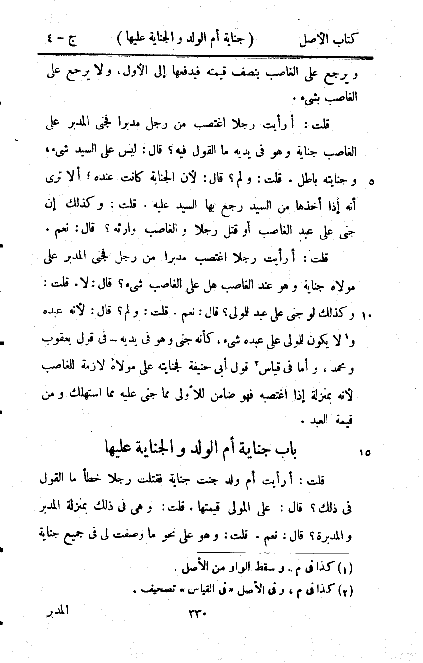 - بَاب جِنَايَة أم الْوَلَد وَالْجِنَايَة عَلَيْهَا