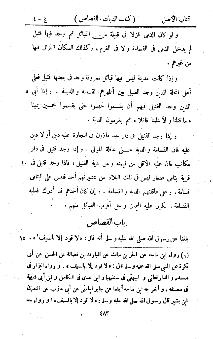 - بلغنَا عَن رَسُول الله صلى الله عَلَيْهِ وَسلم أَنه قَالَ لَا قَود إِلَّا بِالسَّيْفِ
