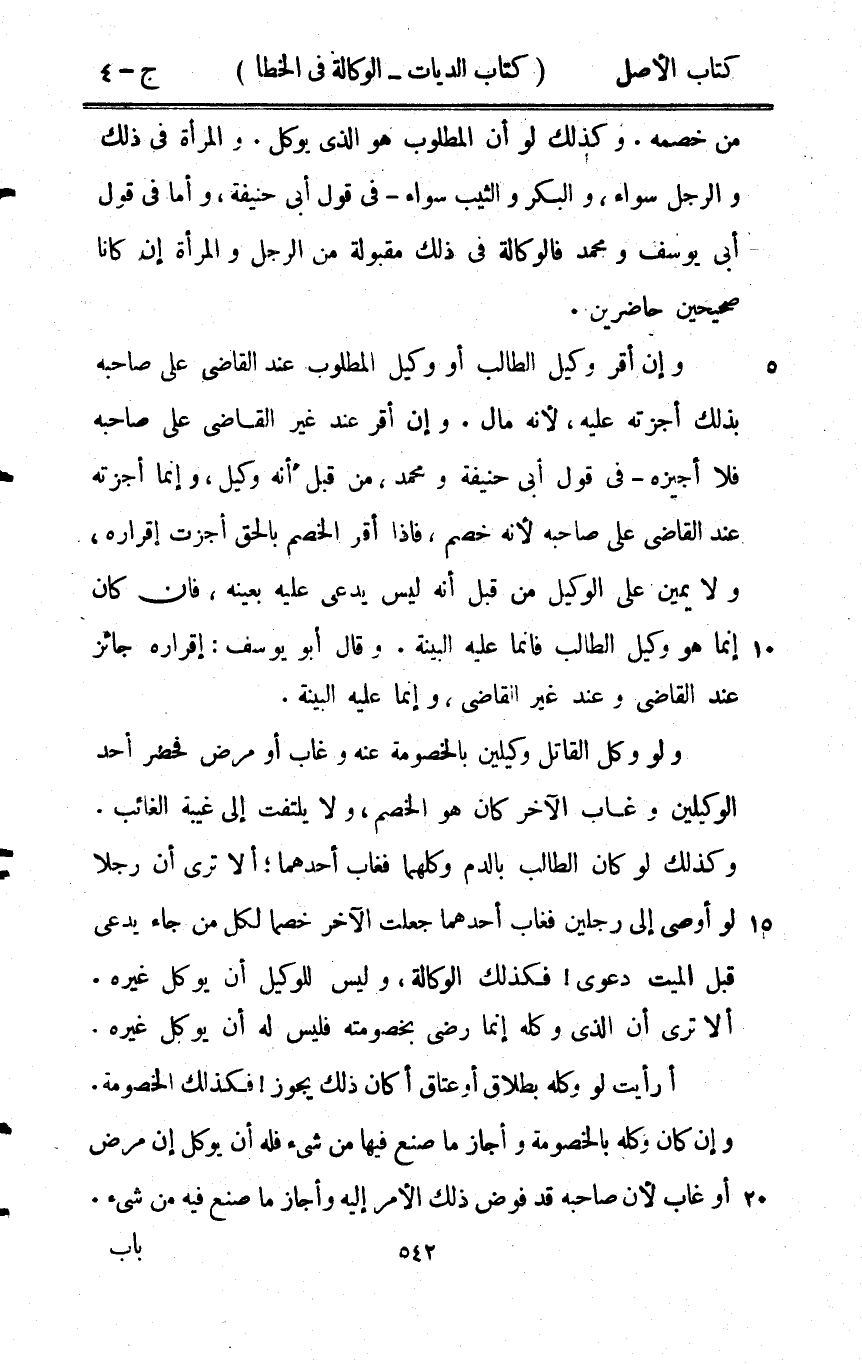 وَإِن أقرّ وَكيل الطَّالِب أَو وَكيل الْمَطْلُوب عِنْد القَاضِي على صَاحبه بذلك أجزته عَلَيْهِ لِأَنَّهُ مَال وَإِن أقرّ عِنْد غير القَاضِي على صَاحبه فَلَا أجيزه فِي قَول أبي حنيفَة وَمُحَمّد من قبل أَنه وَكيل وَإِنَّمَا أجزته عِنْد القَاضِي على صَاحبه لِأَنَّهُ خصم فاذا أقرّ الْخصم بِالْحَقِّ أجزت إِقْرَاره وَلَا يَمِين على الْوَكِيل من قبل أَنه لَيْسَ يدعى عَلَيْهِ بِعَيْنِه فان كَانَ إِنَّمَا هُوَ وَكيل الطَّالِب فانما عَلَيْهِ الْبَيِّنَة وَقَالَ أَبُو يُوسُف إِقْرَاره جَائِز عِنْد القَاضِي وَعند غير القَاضِي وَإِنَّمَا عَلَيْهِ الْبَيِّنَة وَلَو وكل الْقَاتِل وكيلين بِالْخُصُومَةِ عَنهُ وَغَابَ أَو مرض فَحَضَرَ أحد الوكيلين وَغَابَ الاخر كَانَ هُوَ الْخصم وَلَا يلْتَفت إِلَى غيبَة الْغَائِب وَكَذَلِكَ لَو كَانَ الطَّالِب بِالدَّمِ وكلهما فَغَاب أَحدهمَا أَلا ترى أَن رجلا لَو أوصى إِلَى رجلَيْنِ فَغَاب أَحدهمَا جعلت الآخر خصما لكل من جَاءَ يدعى قبل الْمَيِّت دَعْوَى فَكَذَلِك الْوكَالَة وَلَيْسَ للْوَكِيل أَن يُوكل غَيره أَلا ترى أَن الَّذِي وَكله إِنَّمَا رَضِي بخصومته فَلَيْسَ لَهُ أَن يُوكل غَيره