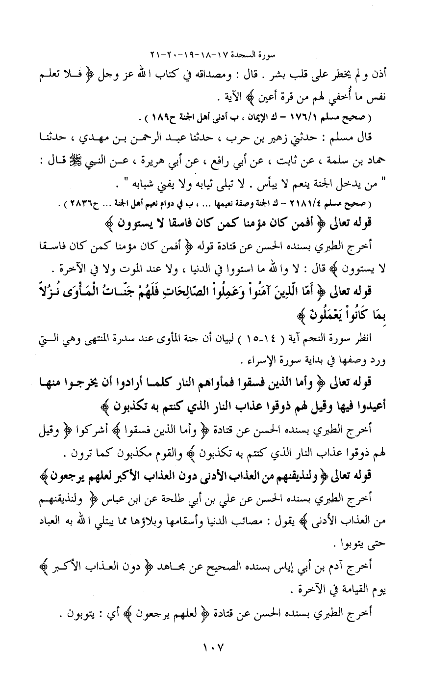 أخرج الطبري بسنده الحسن عن قتادة قوله (أَفَمَنْ كَانَ مُؤْمِنًا كَمَنْ كَانَ فَاسِقًا لَا يَسْتَوُونَ) قال: لا والله ما استووا في الدنيا، ولا عند الموت ولا في الآخرة.