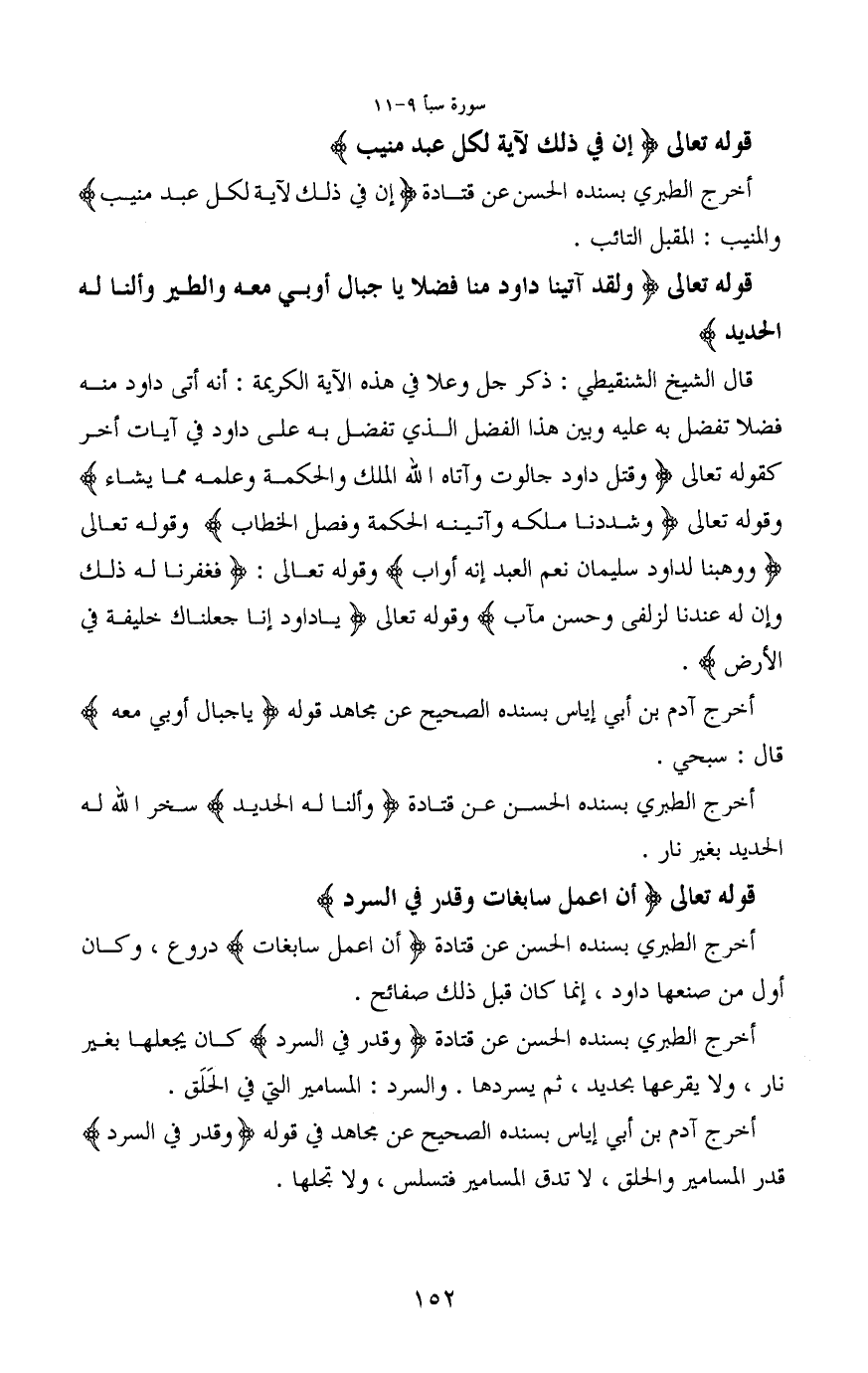 قوله تعالى (وَلَقَدْ آَتَيْنَا دَاوُودَ مِنَّا فَضْلًا يَا جِبَالُ أَوِّبِي مَعَهُ وَالطَّيْرَ وَأَلَنَّا لَهُ الْحَدِيدَ)