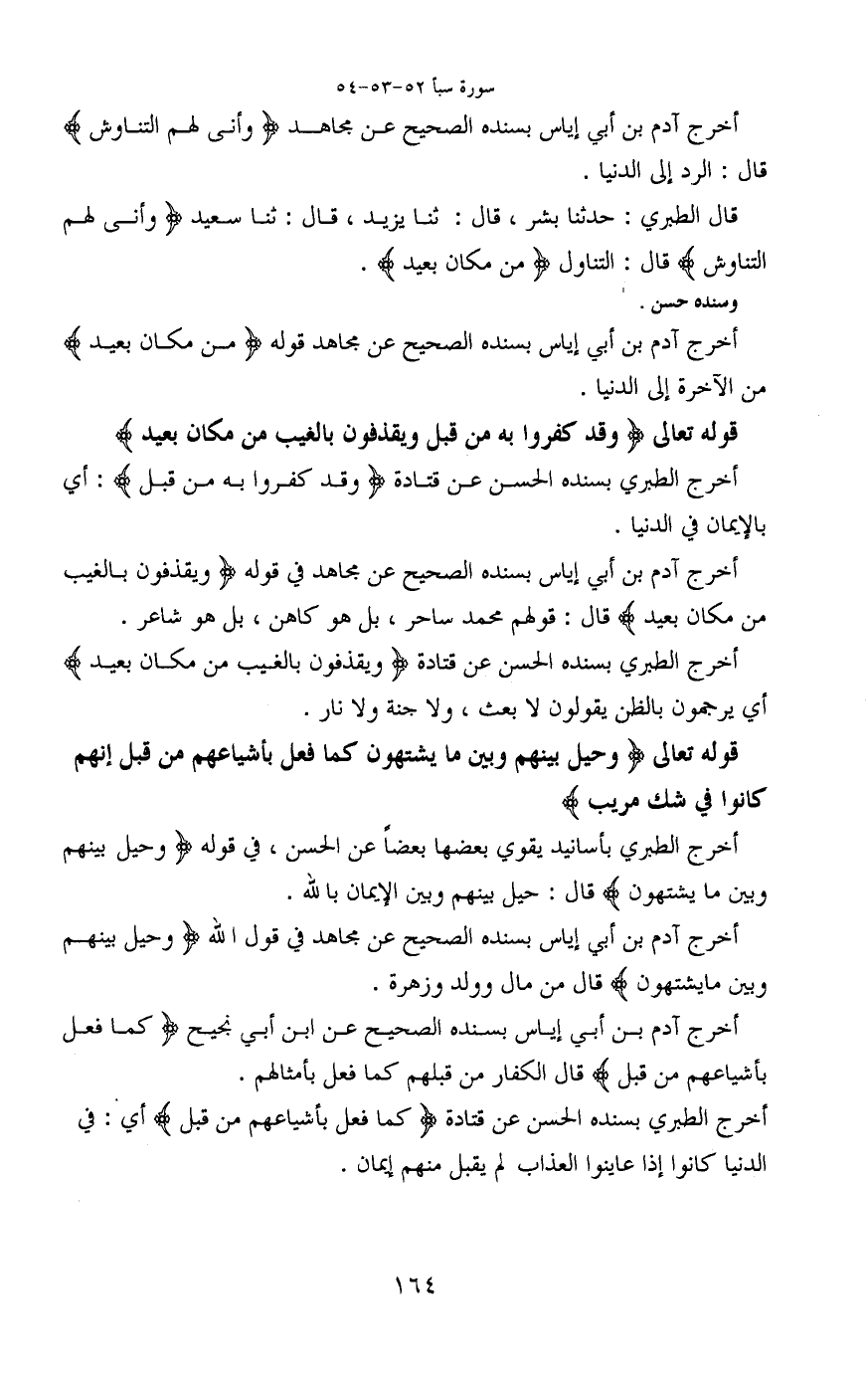 أخرج آدم بن أبي إياس بسنده الصحيح عن مجاهد (وأنى لهم التناوش) قال: الرد آل الدنيا.