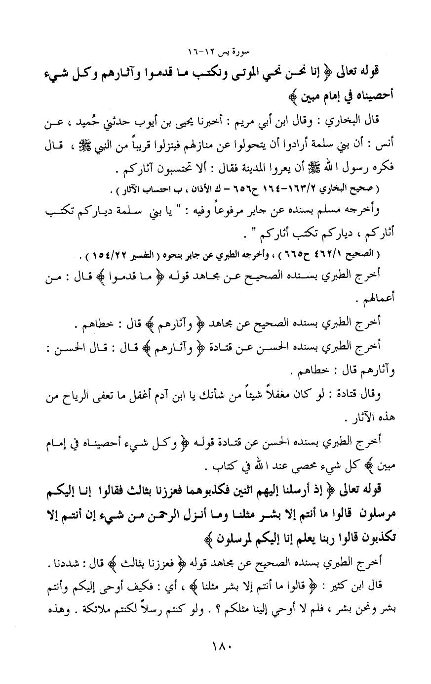 قوله تعالى (إِنَّا نَحْنُ نُحْيِي الْمَوْتَى وَنَكْتُبُ مَا قَدَّمُوا وَآَثَارَهُمْ وَكُلَّ شَيْءٍ أحْصَيْنَاهُ فِي إِمَامٍ مُبِينٍ)