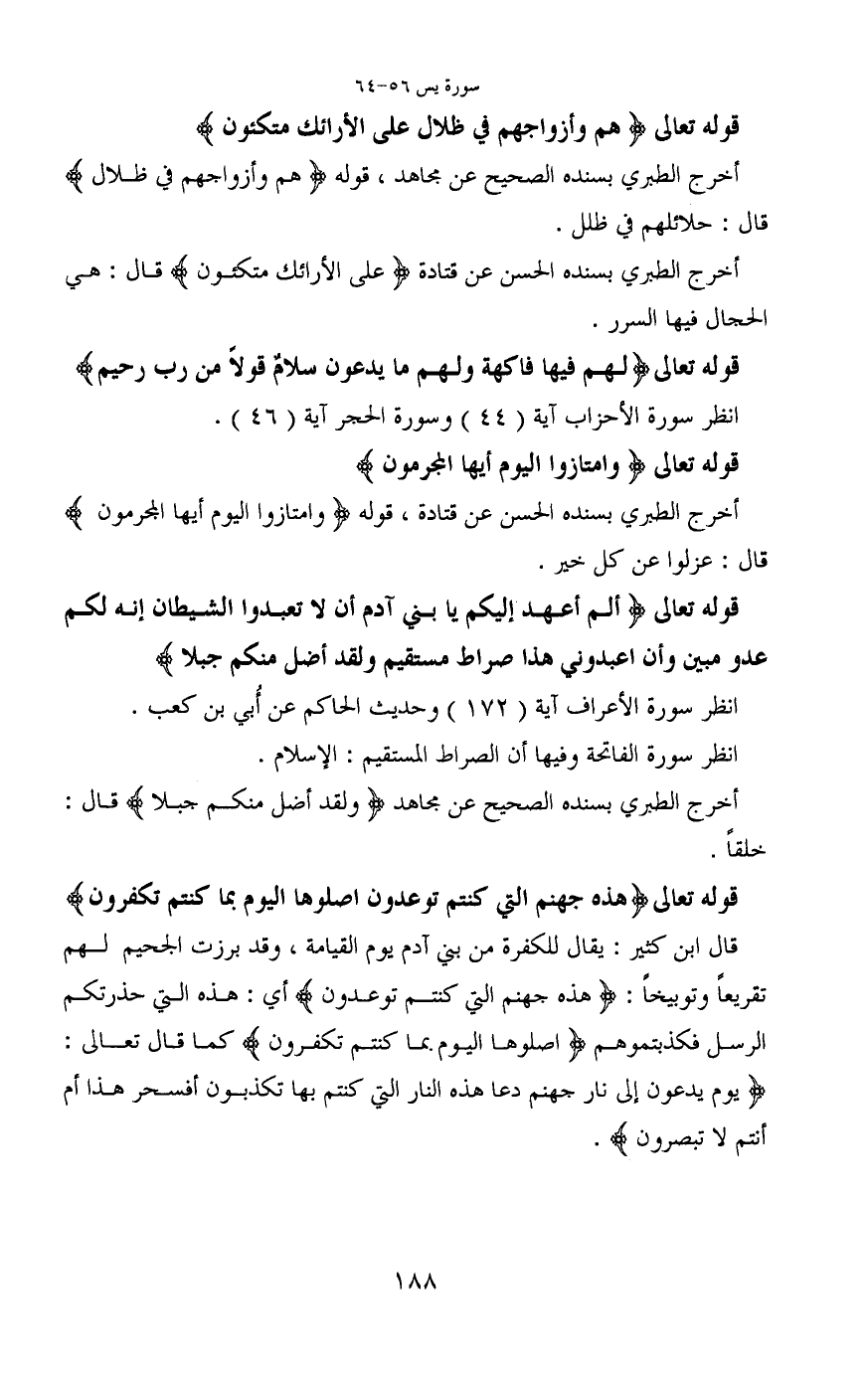قوله تعالى (أَلَمْ أَعْهَدْ إِلَيْكُمْ يَا بَنِي آَدَمَ أَنْ لَا تَعْبُدُوا الشَّيْطَانَ إِنَّهُ لَكُمْ عَدُوٌّ مُبِينٌ (60) وَأَنِ اعْبُدُونِي هَذَا صِرَاطٌ مُسْتَقِيمٌ (61) وَلَقَدْ أَضَلَّ مِنْكُمْ جِبِلًّا)