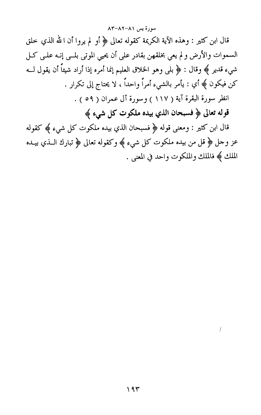 قوله تعالى (فَسُبْحَانَ الَّذِي بِيَدِهِ مَلَكُوتُ كُلِّ شَيْءٍ)