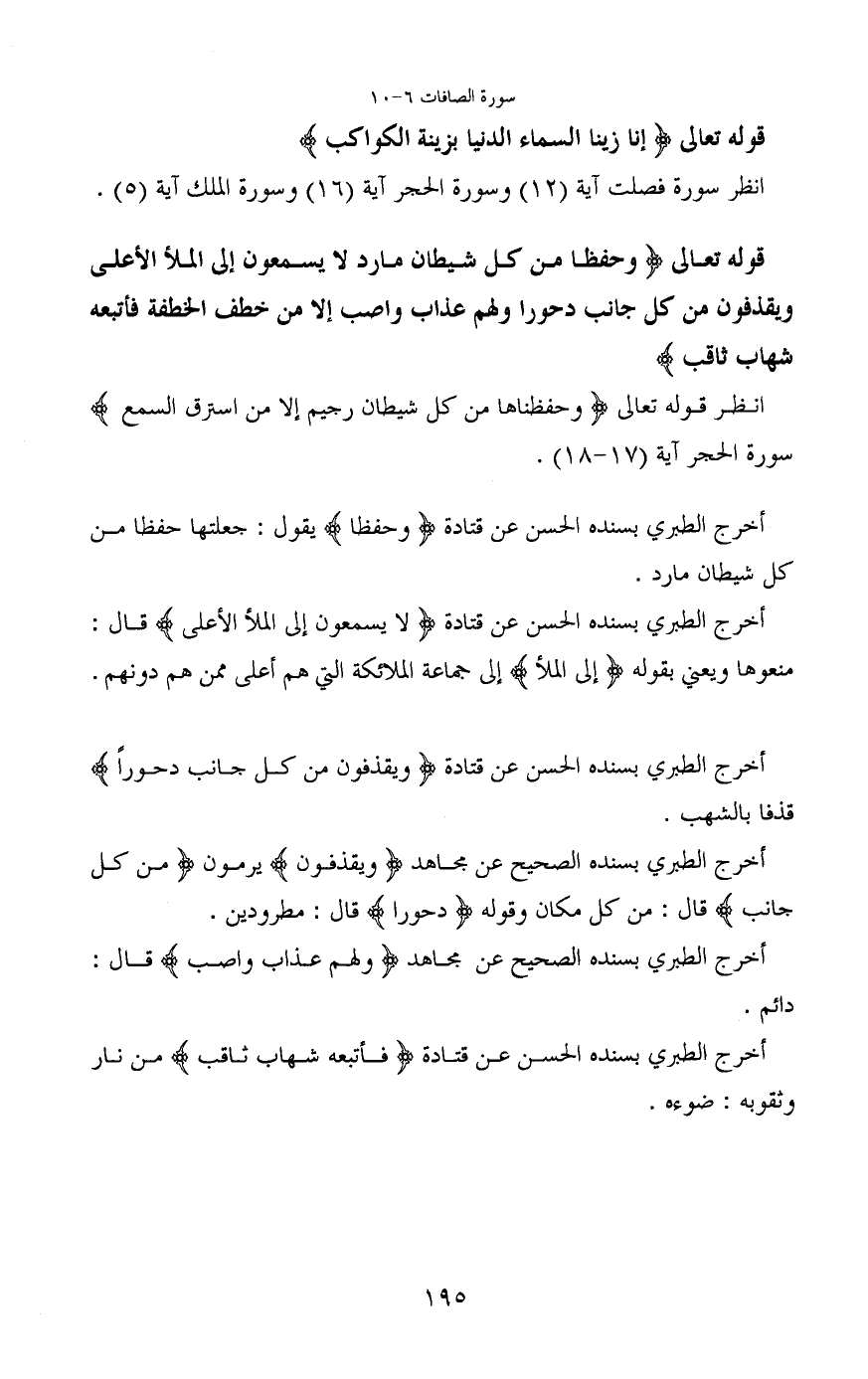 أخرج الطبري بسنده الحسن عن قتادة (وحفظا) يقول: جعلتها حفظا من كل شيطان مارد.