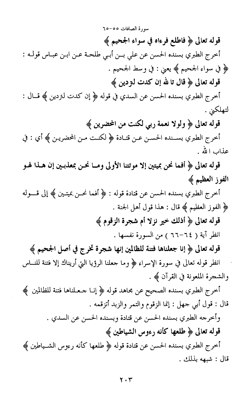 قوله تعالى (إِنَّا جَعَلْنَاهَا فِتْنَةً لِلظَّالِمِينَ (63) إِنَّهَا شَجَرَةٌ تَخْرُجُ فِي أَصْلِ الْجَحِيمِ) انظر قوله تعالى في سورة الإسراء (وما جعلنا الرؤيا التي أريناك إلا فتنة للناس والشجرة الملعونة في القرآن) .