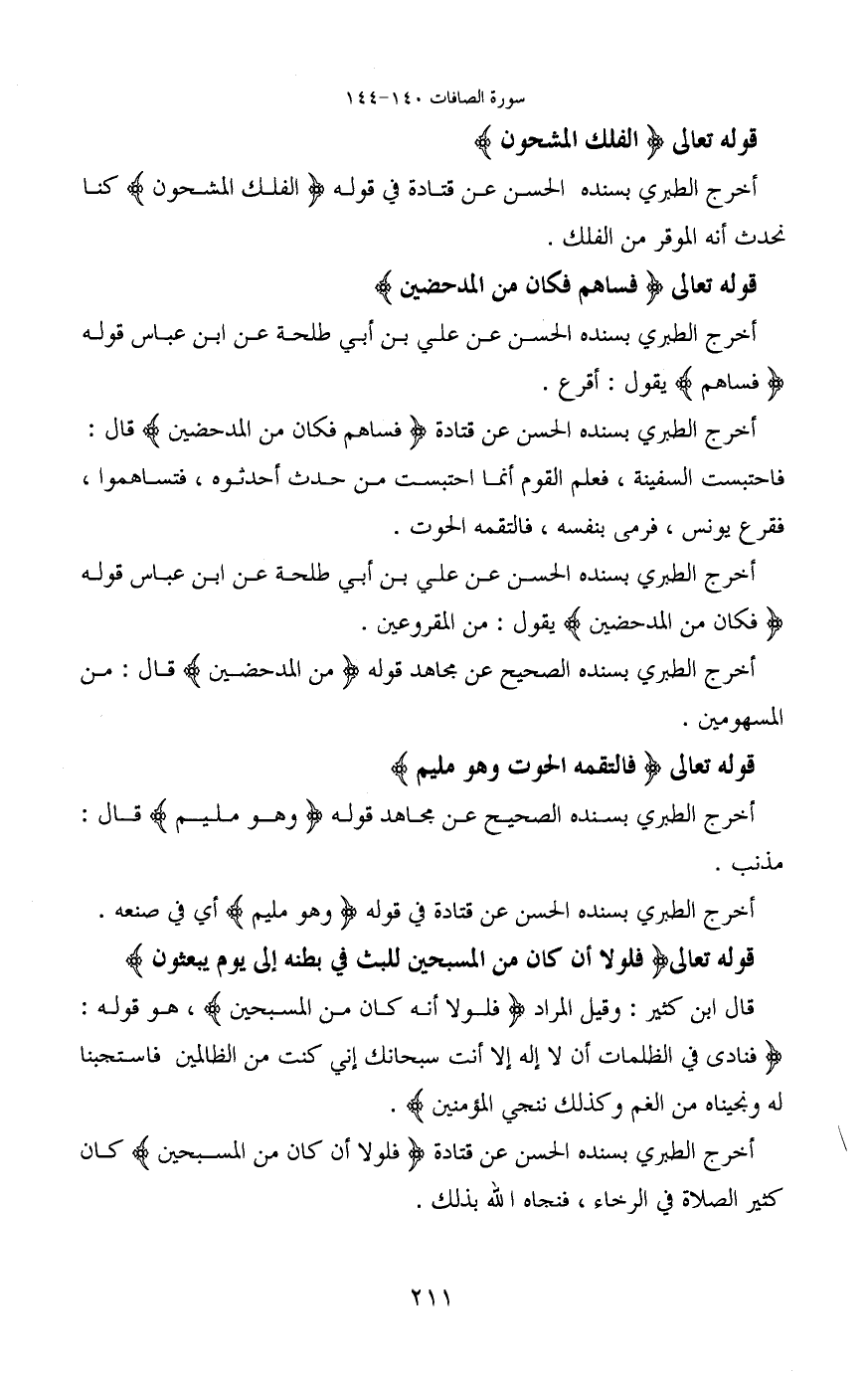 أخرج الطبري بسنده الحسن عن قتادة (فساهم فكان من المدحضين) قال: