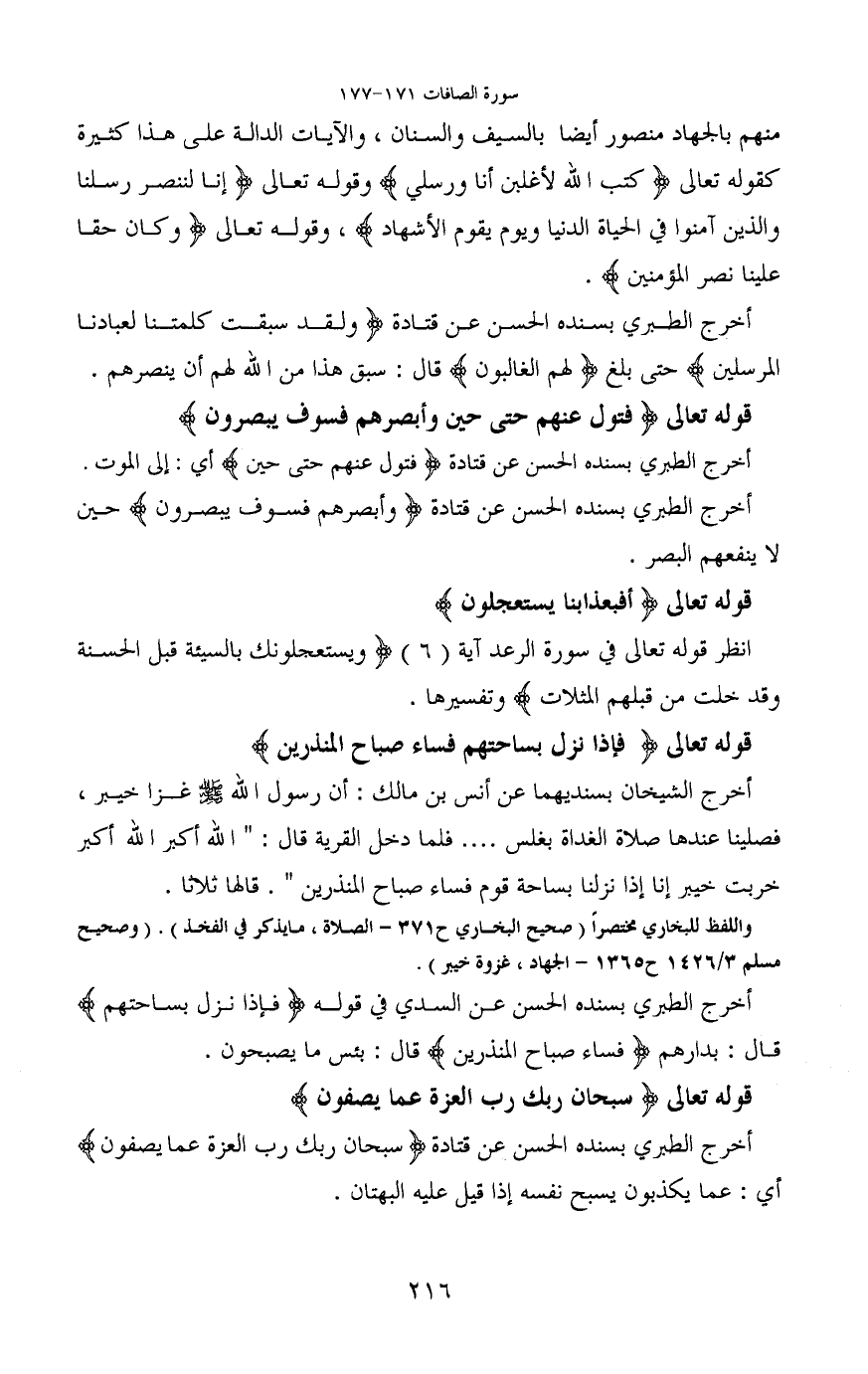 قوله تعالى (فَتَوَلَّ عَنْهُمْ حَتَّى حِينٍ (174) وَأَبْصِرْهُمْ فَسَوْفَ يُبْصِرُونَ)